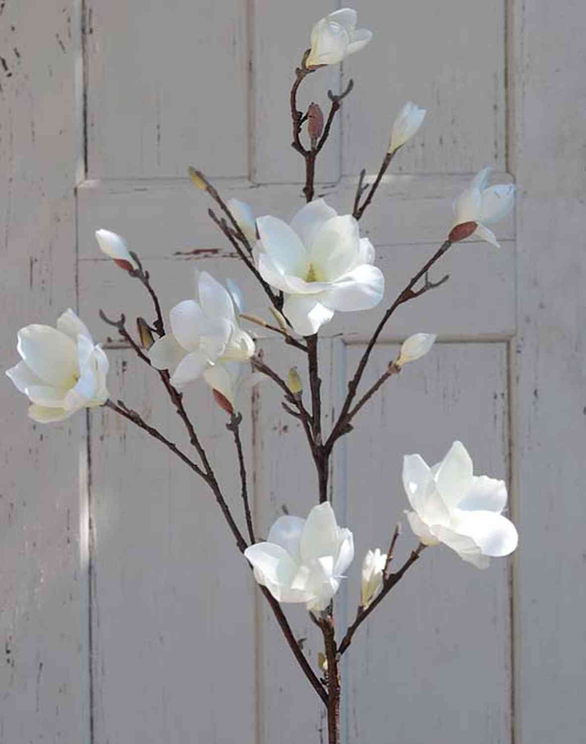 Textilní větev magnólie YONA, krémově bílá, 130cm, Ø5-15cm