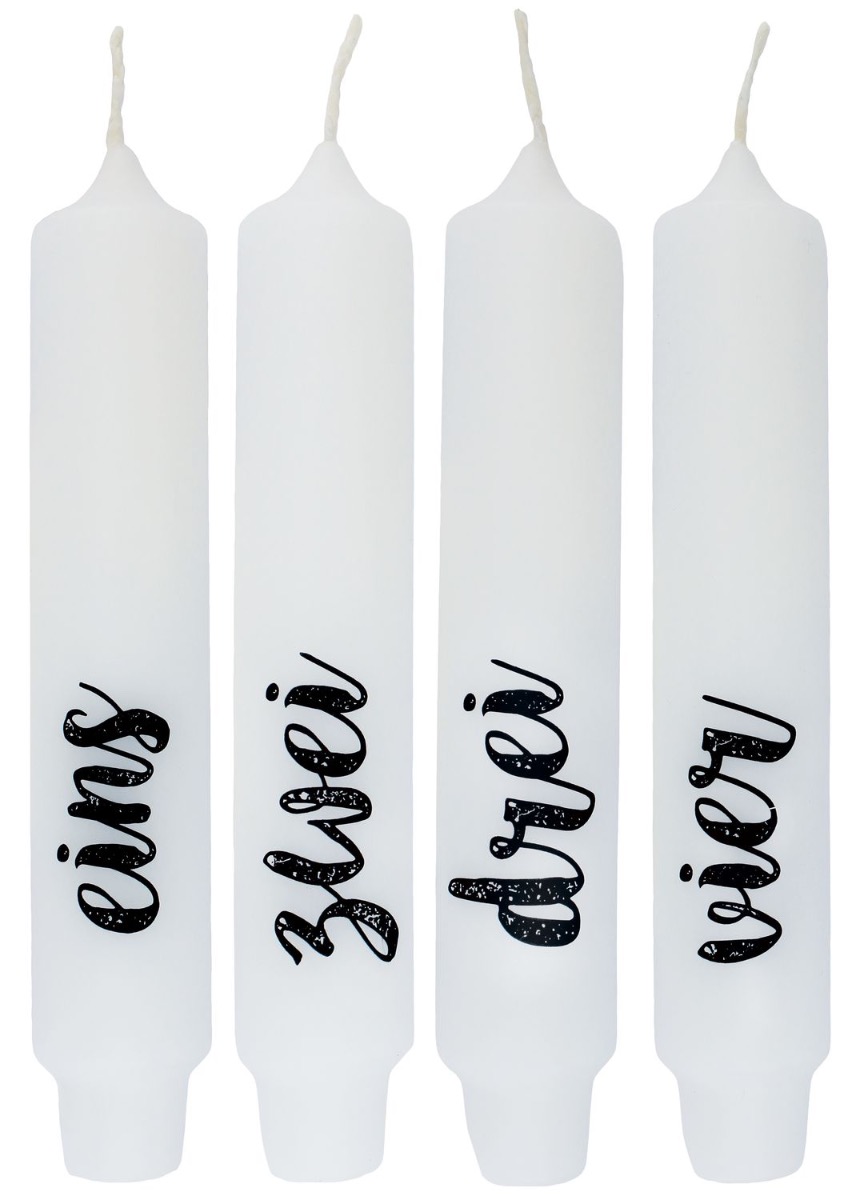 Tyčová svíčka s nápisem KELANI, Advent, 4 svíčky, 4 nápisy, barevná, 16,5cm, Ø2,8cm, 6h