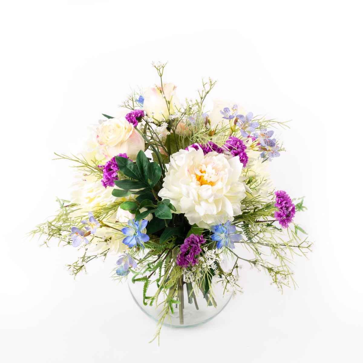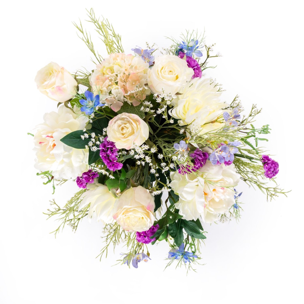 Udová volba: Letní kytice CALANTHE, bílo-fialovo-modrá, 45cm, Ø55cm