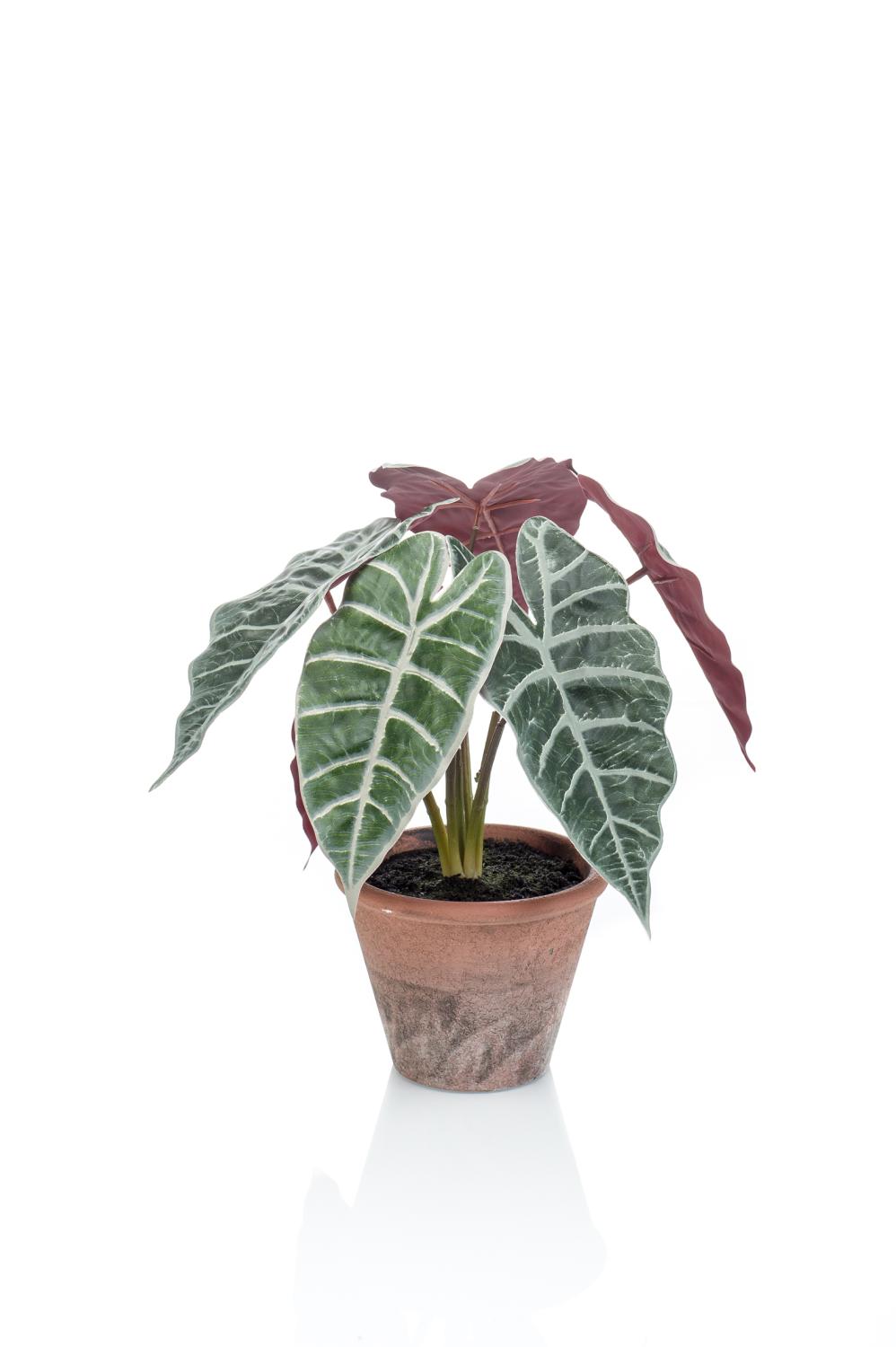 Umělá alokasie sanderiana GARCIA, terakotový květináč, zeleno-bílá, 40cm