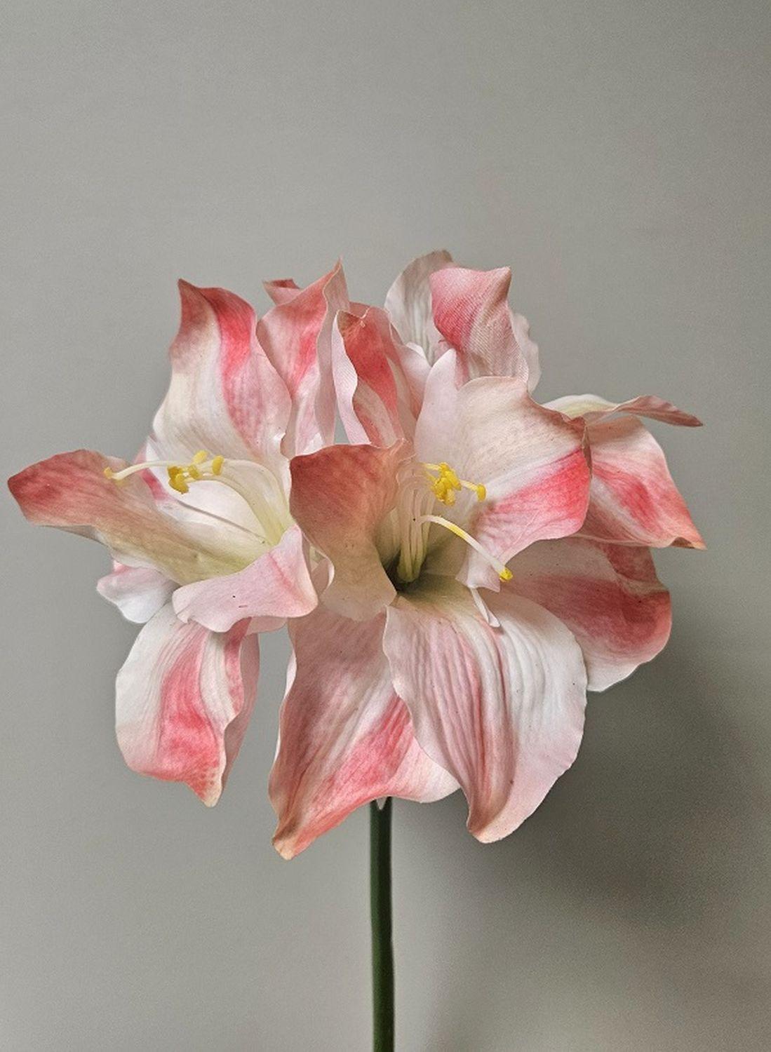 Umělá amarylis SARNUK, bílo-růžová, 80cm