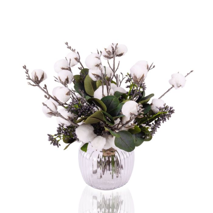 Drobná kytice z nadýchaných bavlníkových květů vnese do vašeho domova esenci přírody. Bez ohledu na styl interiéru kytice dokonale splyne s přírodním prostředím. Kytice je také ideální jako dárek pro minimalisty nebo milovníky přírody. Moderní interpretace zimní kytice, která poskytne přátelské přivítání v každém vstupním prostoru.