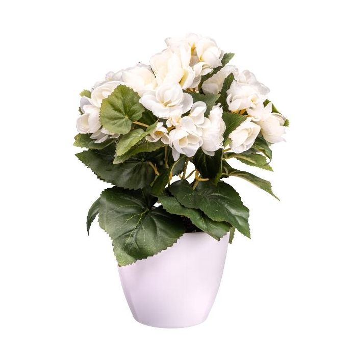Umělá begónie SYLINA, bílý dekorativní květináč, krémová, 30cm