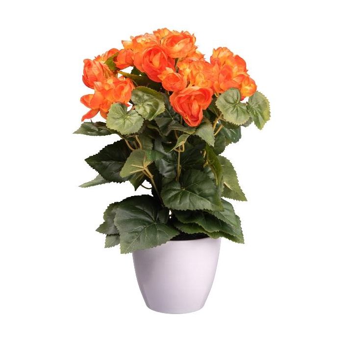 Umělá begónie SYLINA, bílý dekorativní květináč, oranžová, 35cm