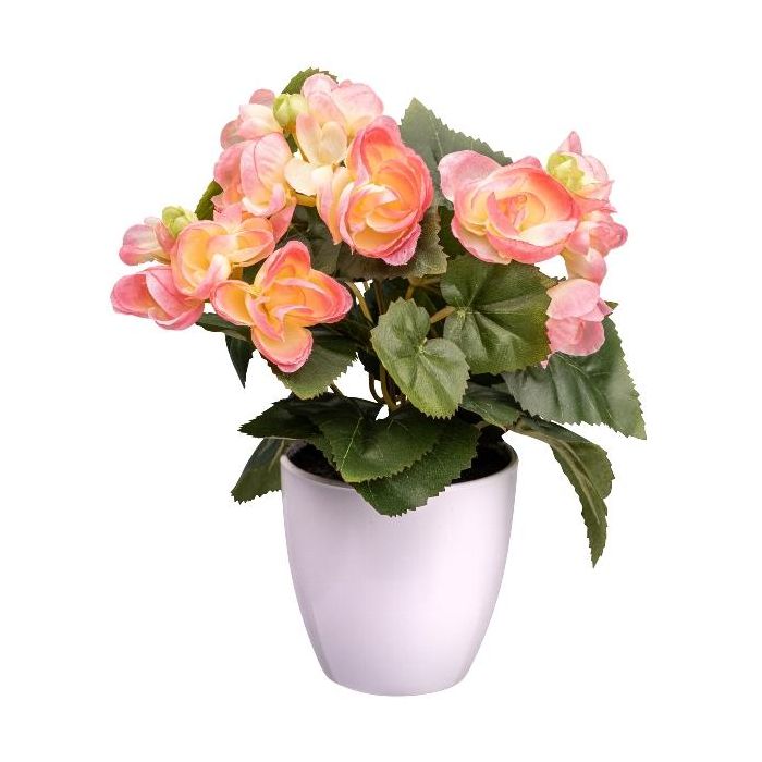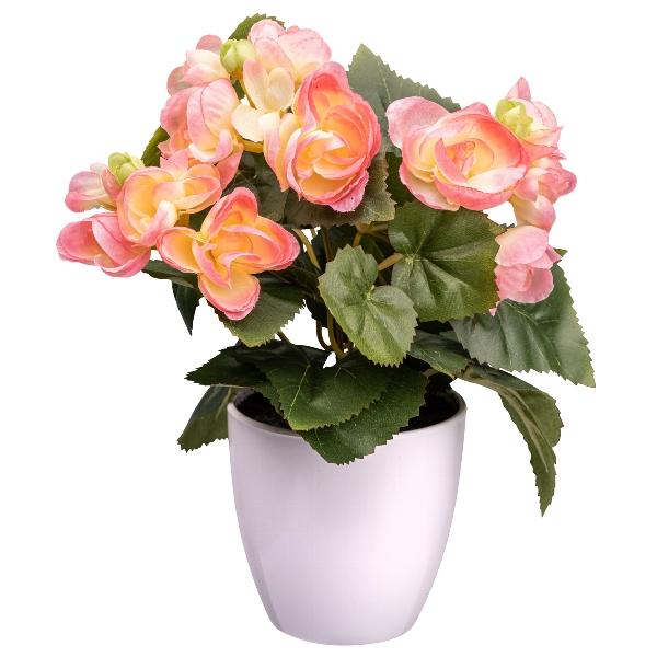 Umělá begonie SYLINA, bílý dekorativní květináč, růžová, 25cm