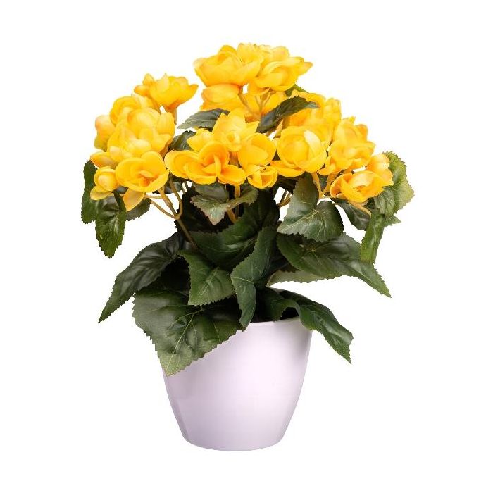Umělá begónie SYLINA, bílý dekorativní květináč, žlutá, 30cm