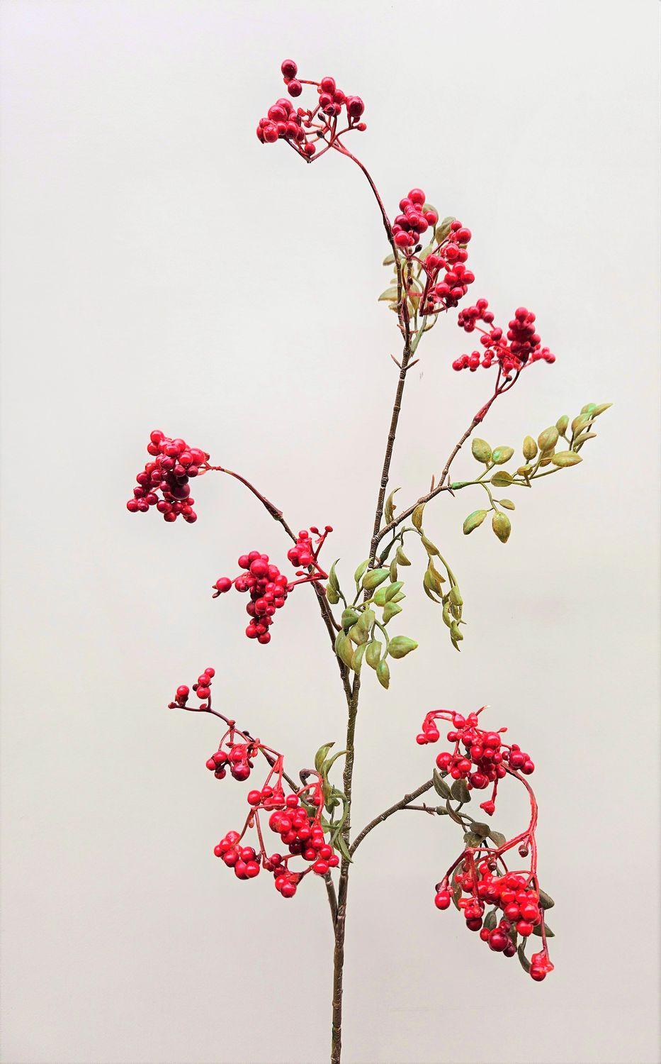 Umělá bezová větvička THEYGE s plody, červená, 75cm