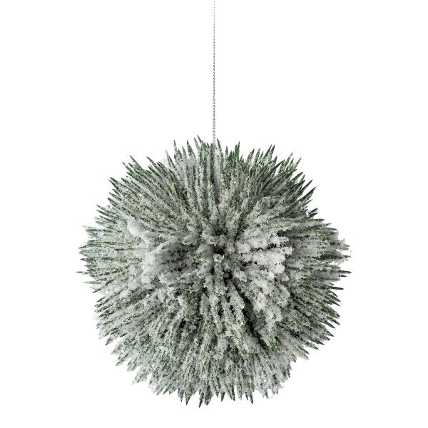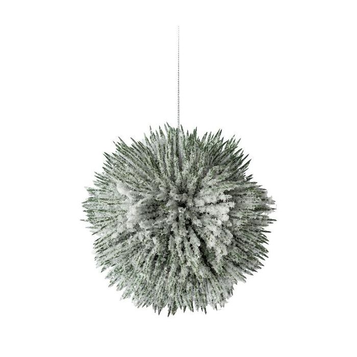 Umělá borová koule PERLKY, zasněžená, závěsná, zelenobílá, Ø14cm