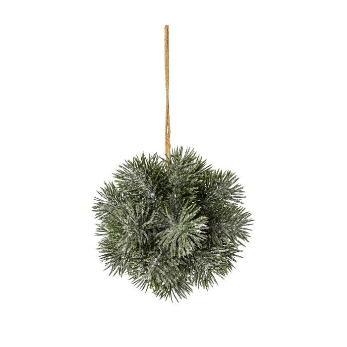 Umělá borovicová koule VORTAS, zmrzlá, závěsná, zelenobílá, Ø15cm