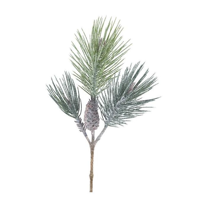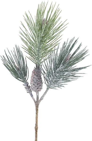 Umělá borovicová větvička SNOLER s třpytkami, šišky, zmrzlá, zelená, 60cm
