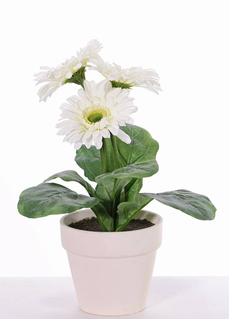 Umělá gerbera SIMONE v dekoračním květináči, bílá, 30cm, Ø9,5cm