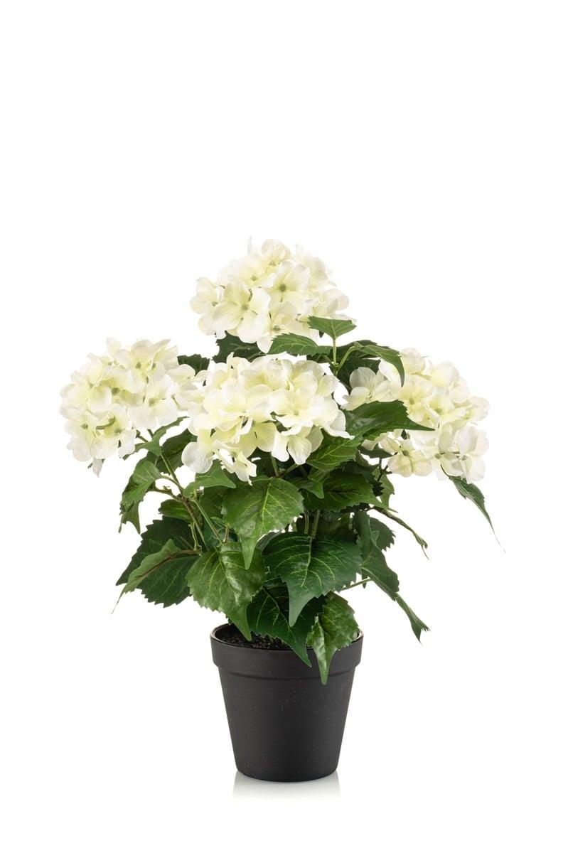 Umělá hortenzie DORJA v dekorativním květináči, bílozelená, 40cm