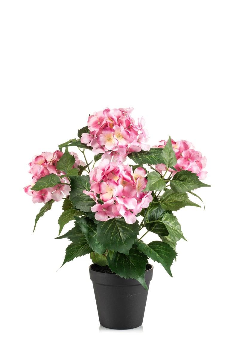 Umělá hortenzie DORJA v dekorativním květináči, růžová, 40cm