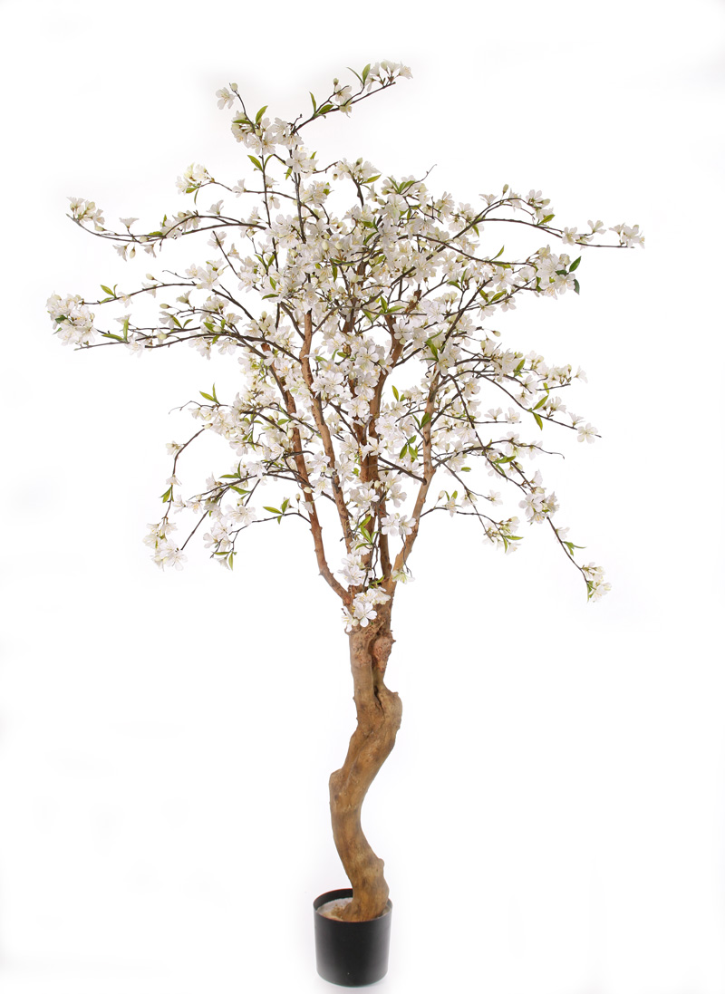 Umělá jabloň KLEO, umělý kmen, květy, pro interiér i exteriér, krémová, 180cm