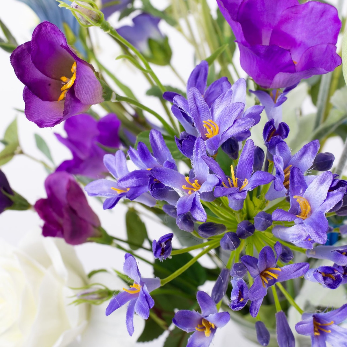 Umělá jarní kytice AVIL, fialovomodrá, bílá, 60cm, Ø45cm