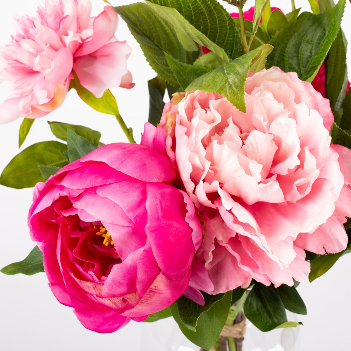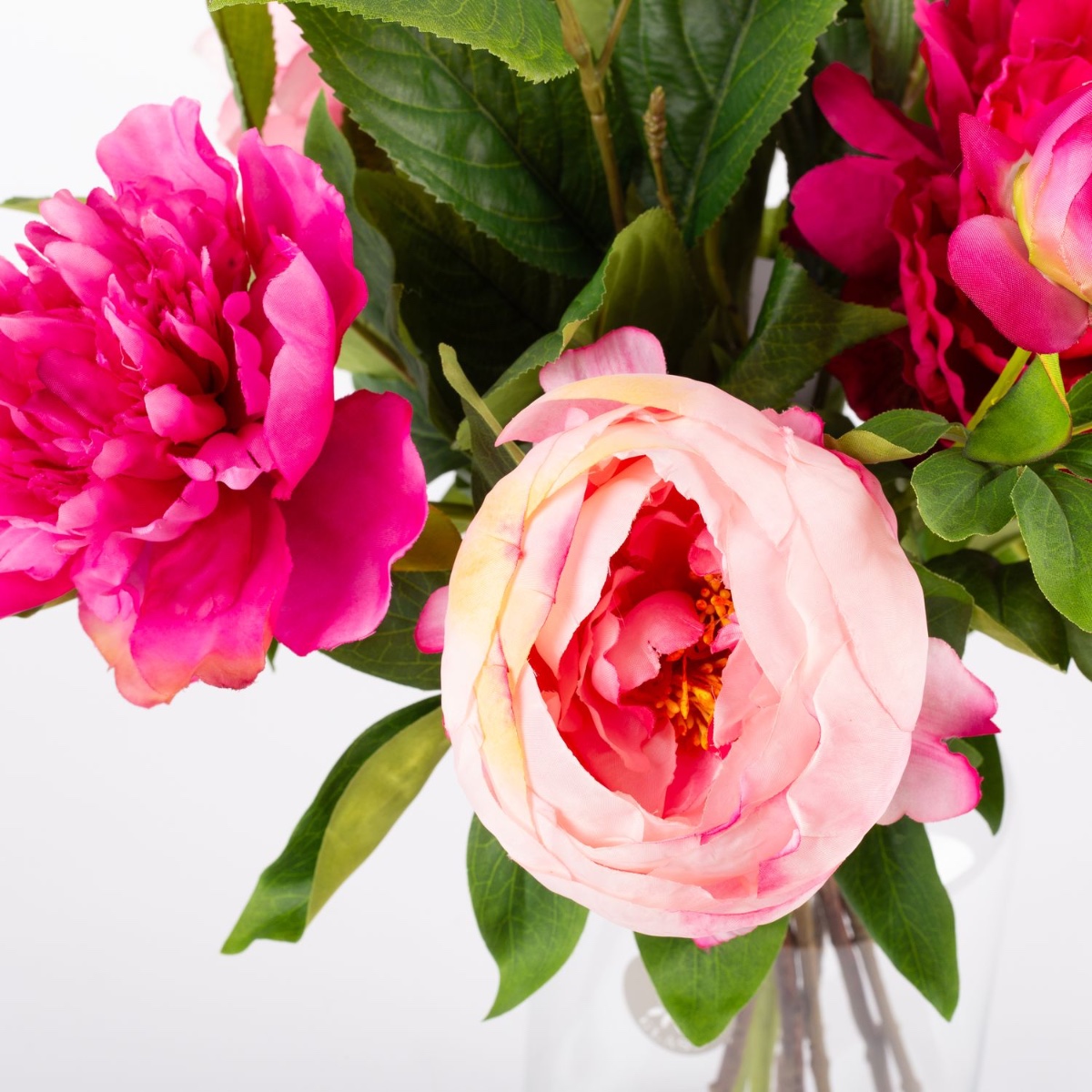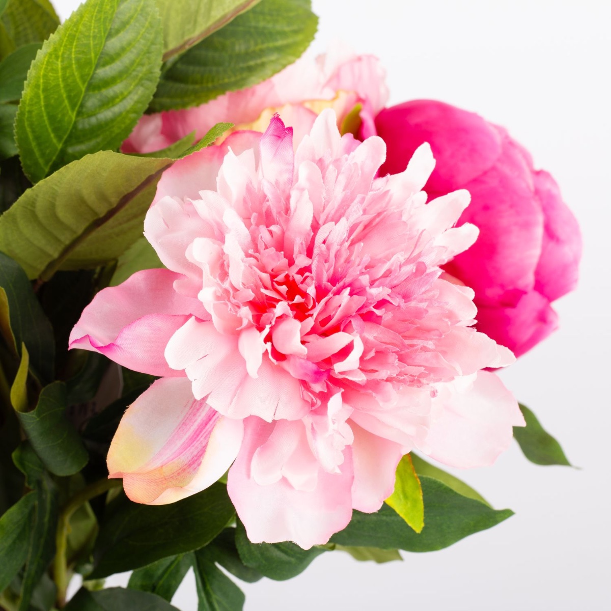 Od fuchsiové po světle růžovou. Pivoňky se svými plnými, bujnými květy ukazují téměř všechny odstíny růžové od tmavě růžové až po světle růžovou. Tato předletní květinová nádhera se dokonale hodí k tomuto ročnímu období a dodá místnosti svěží nádech barev. Tato kytice pivoněk vypadá tak opravdově, jako by byla utržena přímo ze zahrady. Musíte se jich dotknout, abyste si uvědomili, že se jedná o vysoce kvalitní umělé květiny vyrobené z látky.