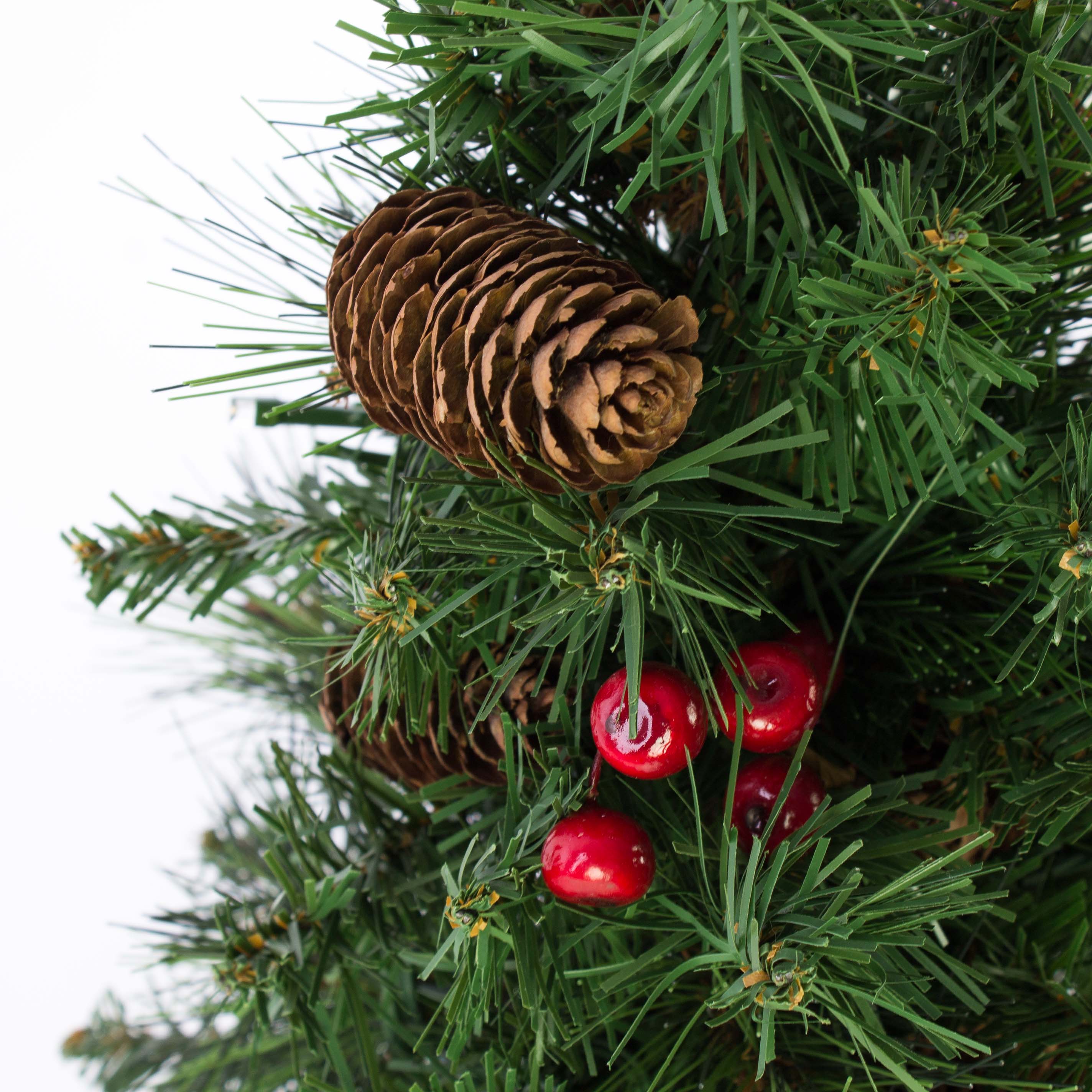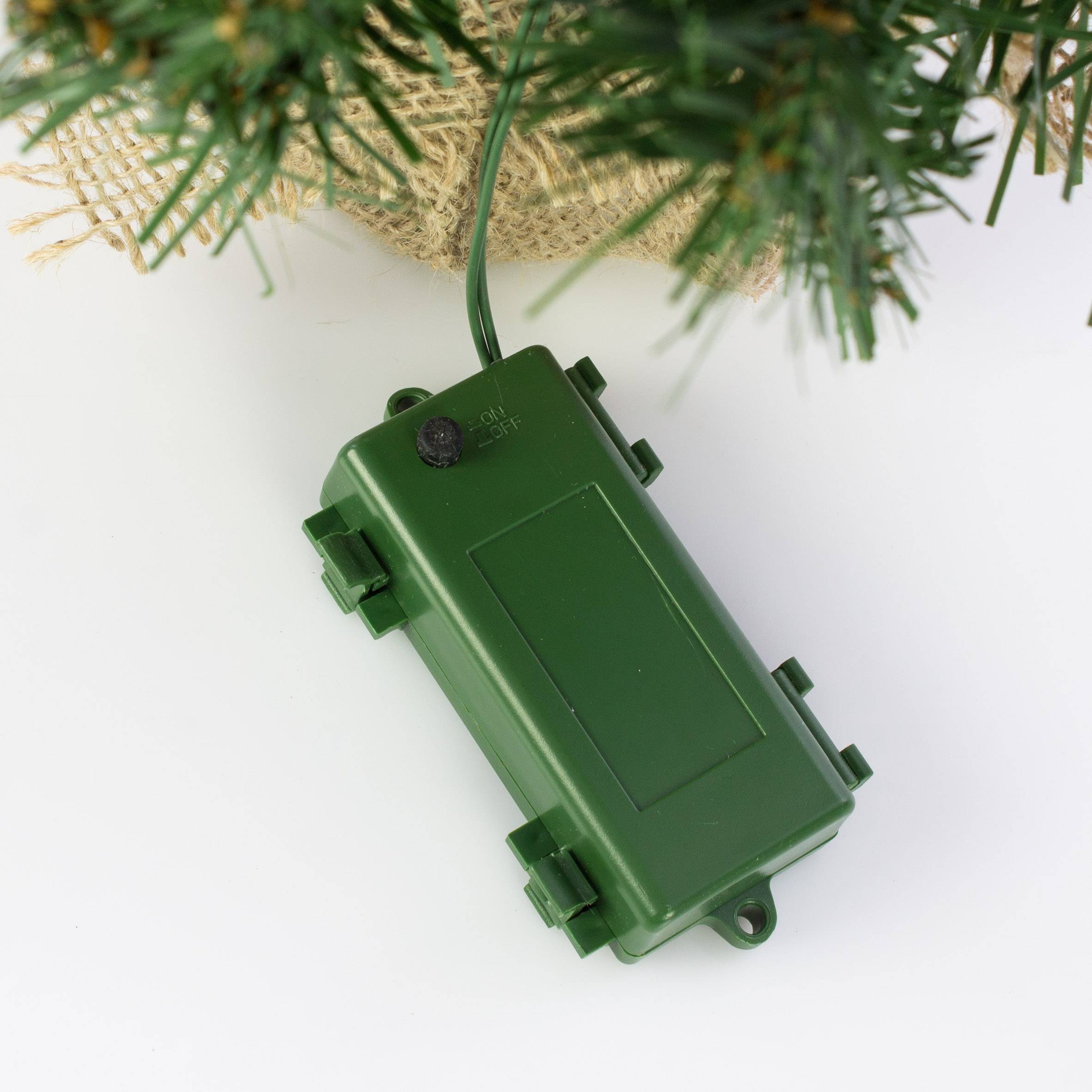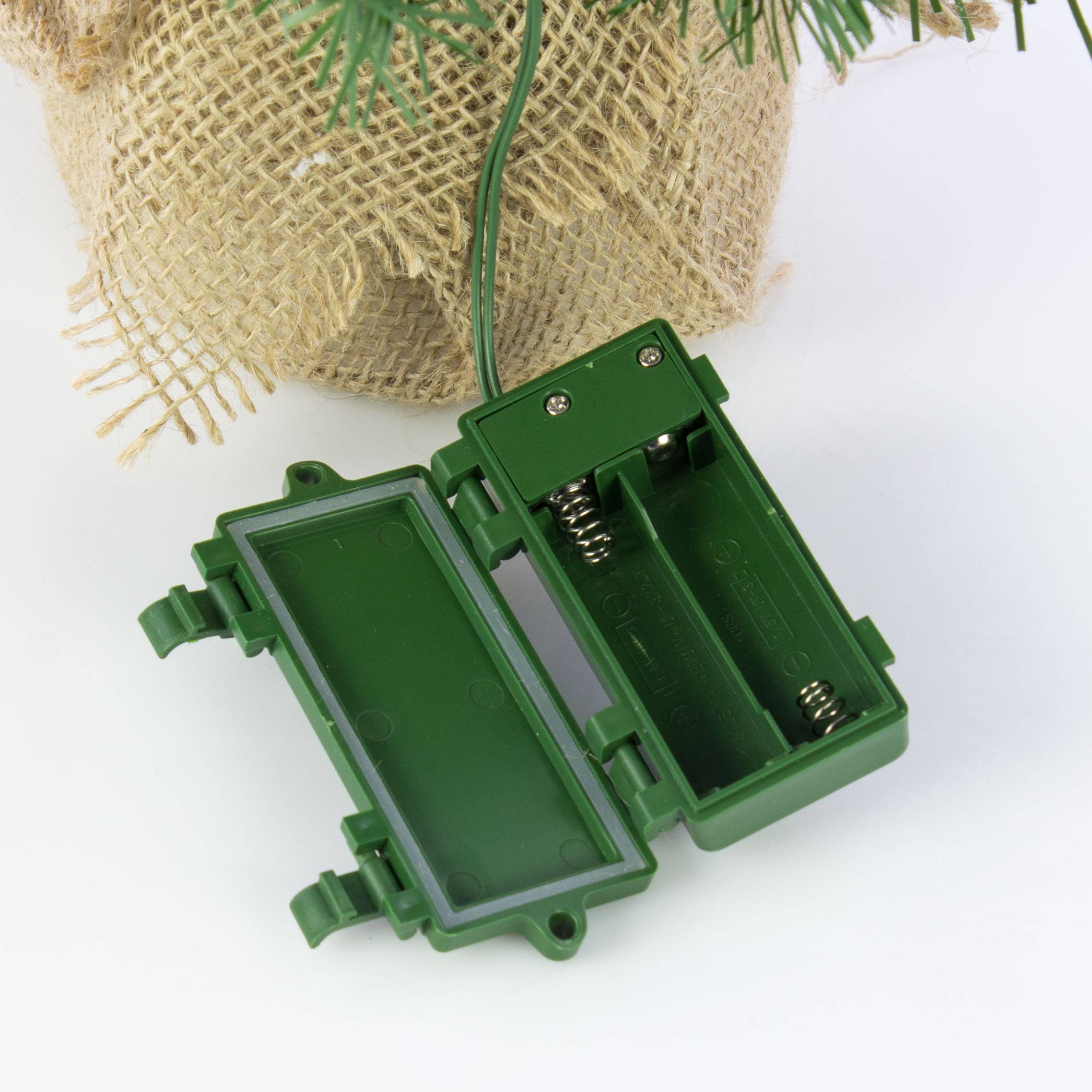 Umělá jedle BUKAREST, se šiškami, jutový pytel, ozdobený, LED diody, 45cm, Ø25cm