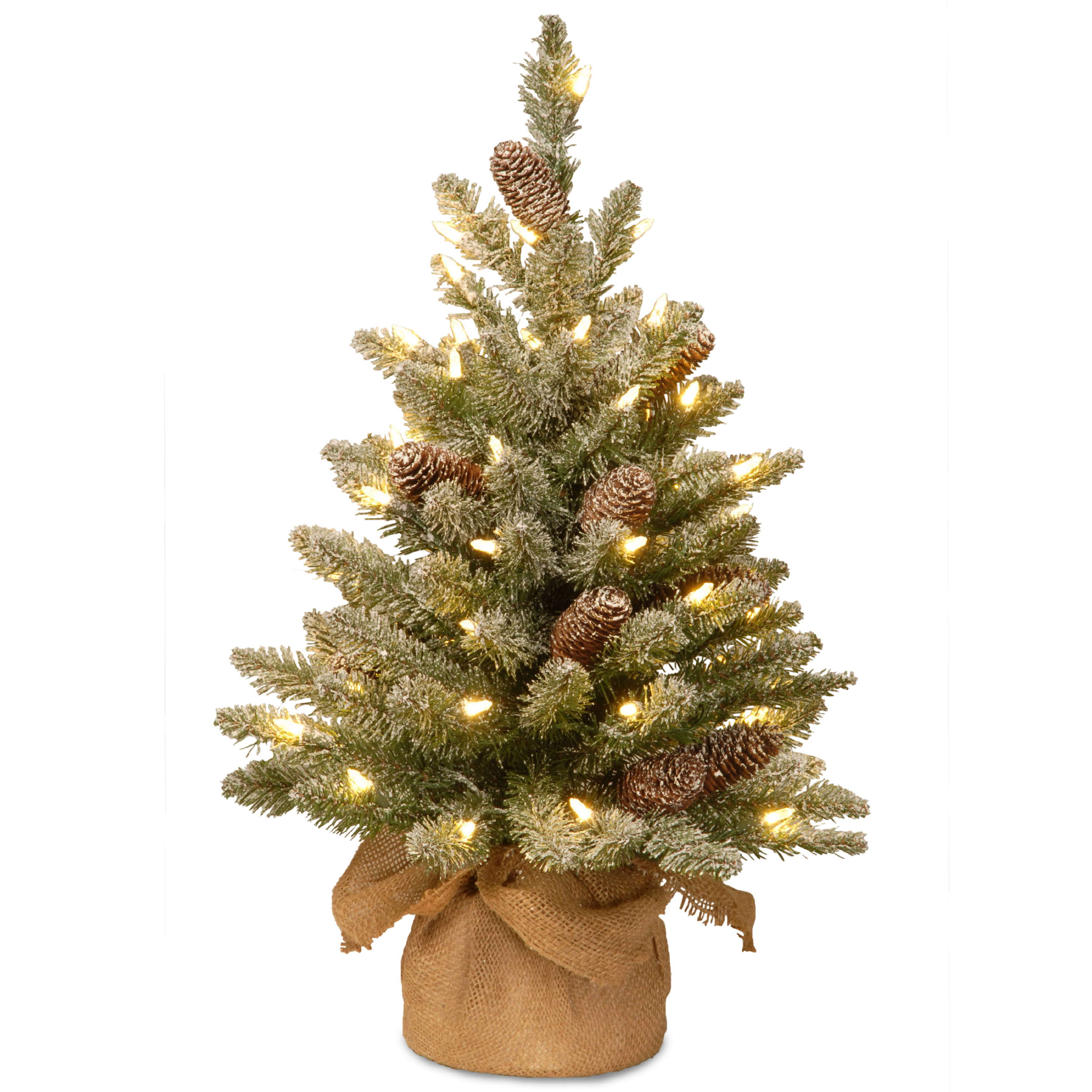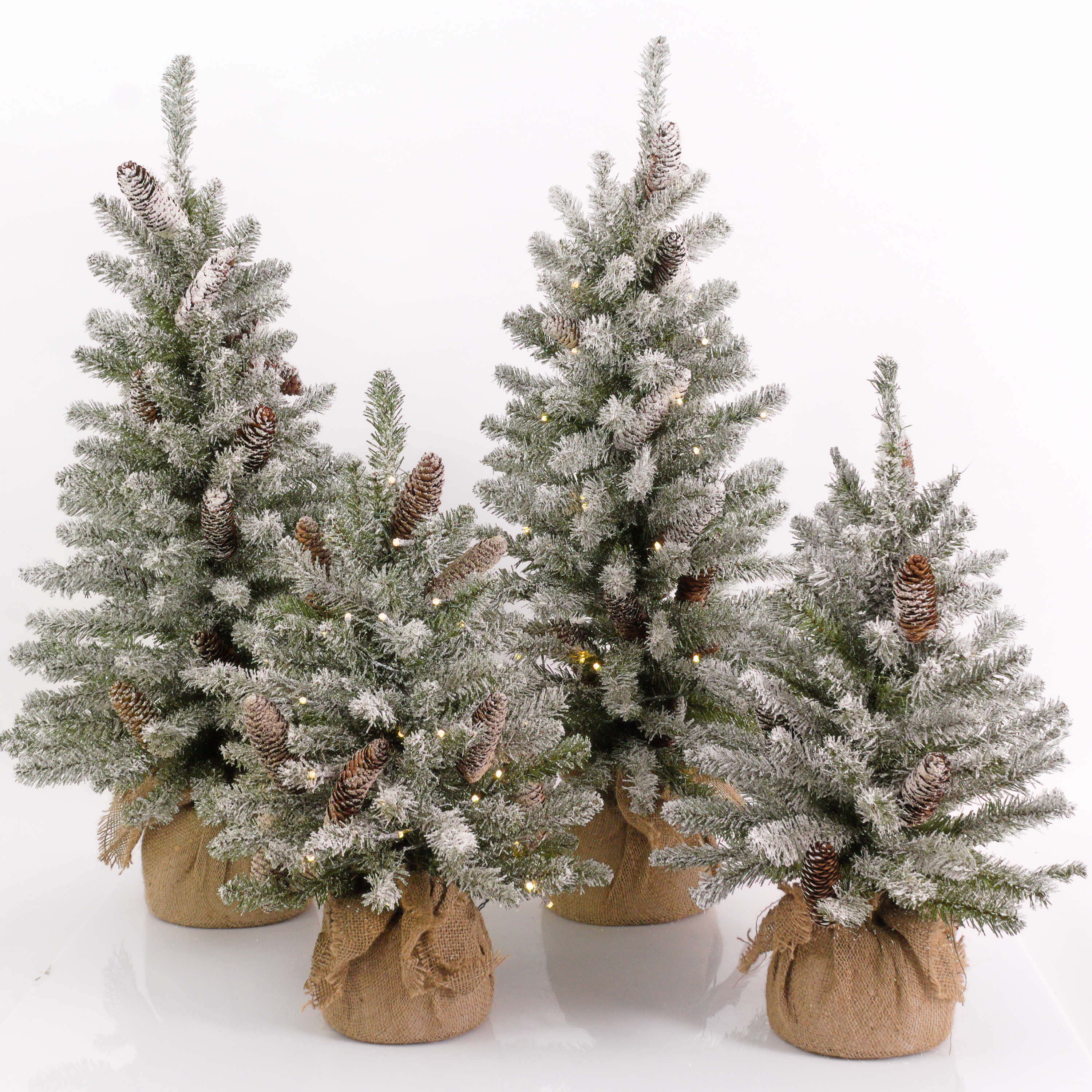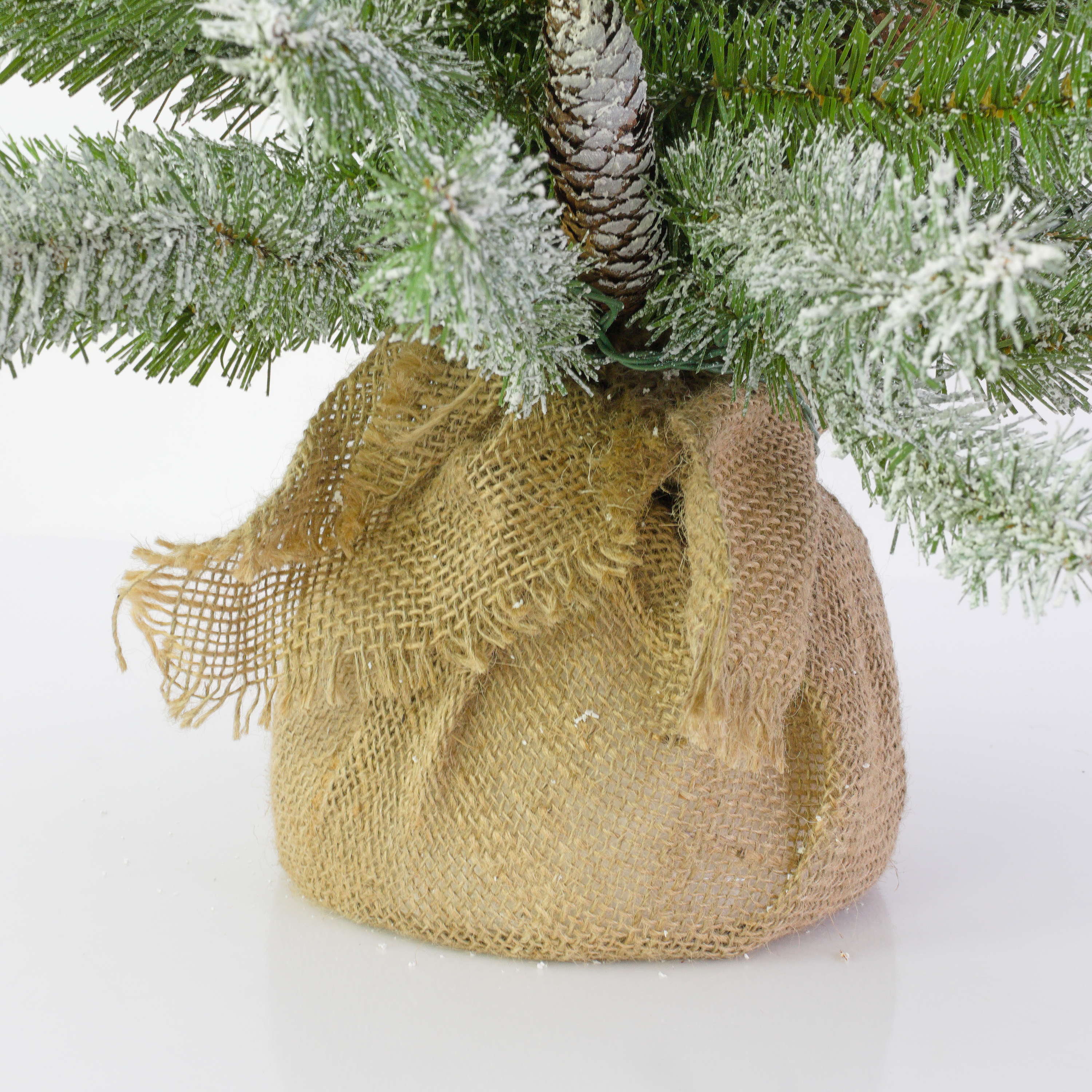 Umělá jedle WIEN, šišky, jutový pytel, LED diody, zasněžená, 60cm, Ø40cm