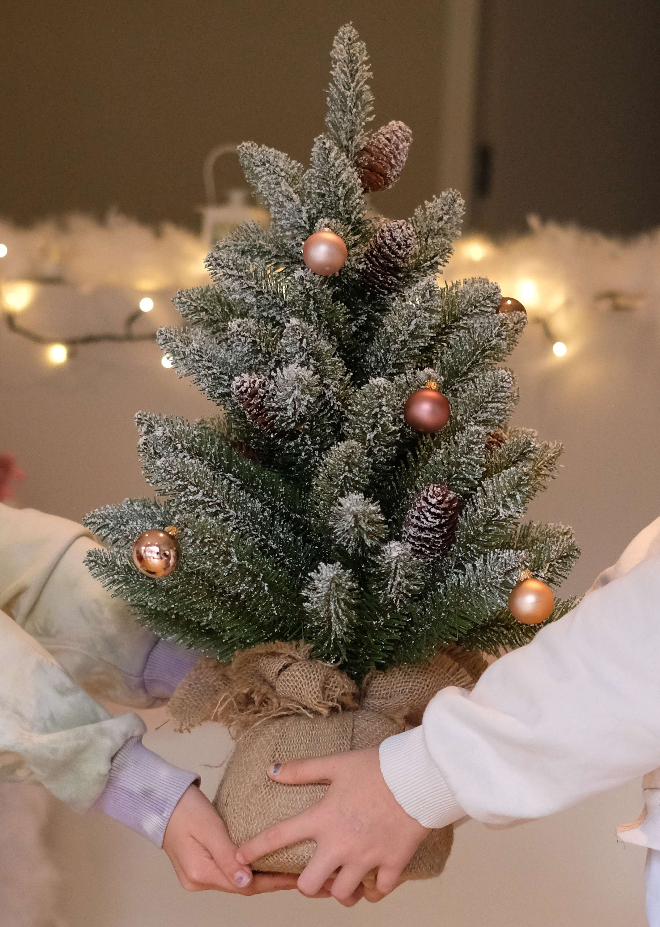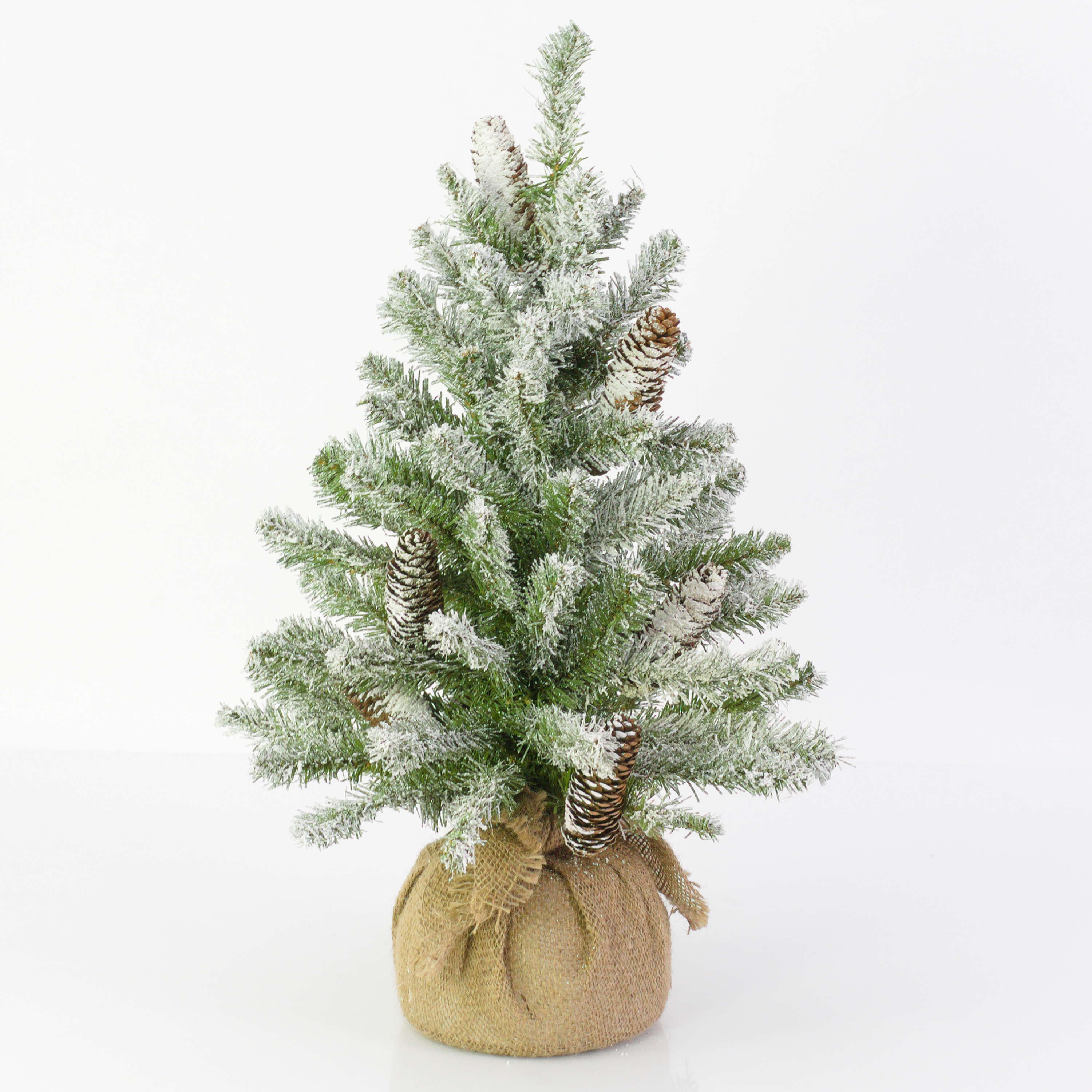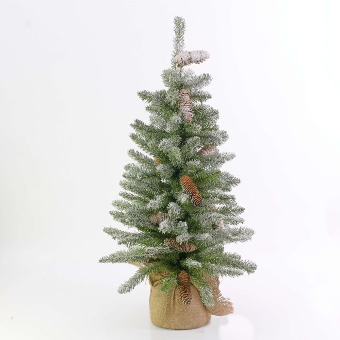 Umělá jedle WIEN, šišky, jutový pytel, zasněžená, 60cm, Ø40cm