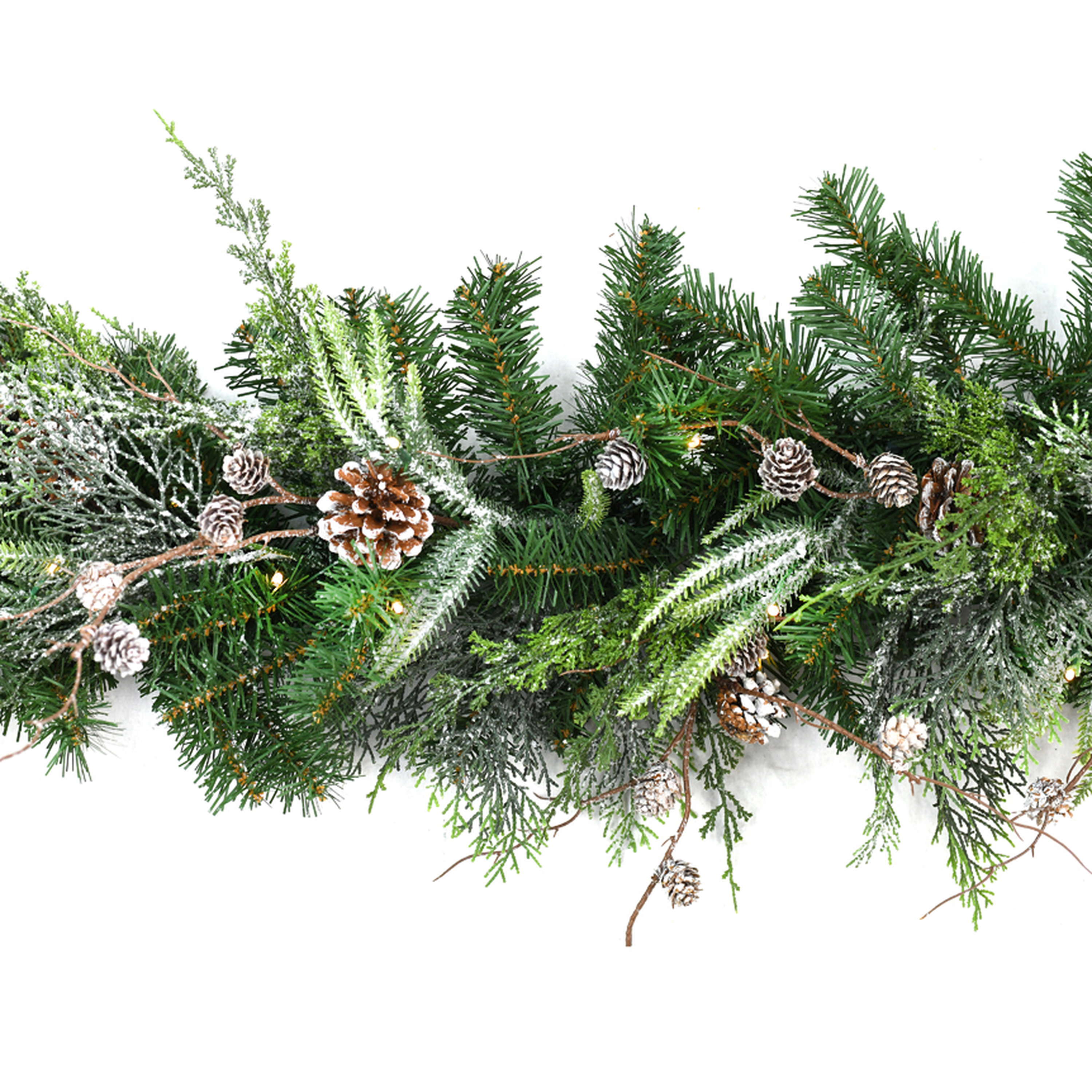 Umělá jedlová girlanda STOCKTON, zelená, zasněžená, LED diody, 180cm, Ø35cm