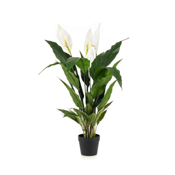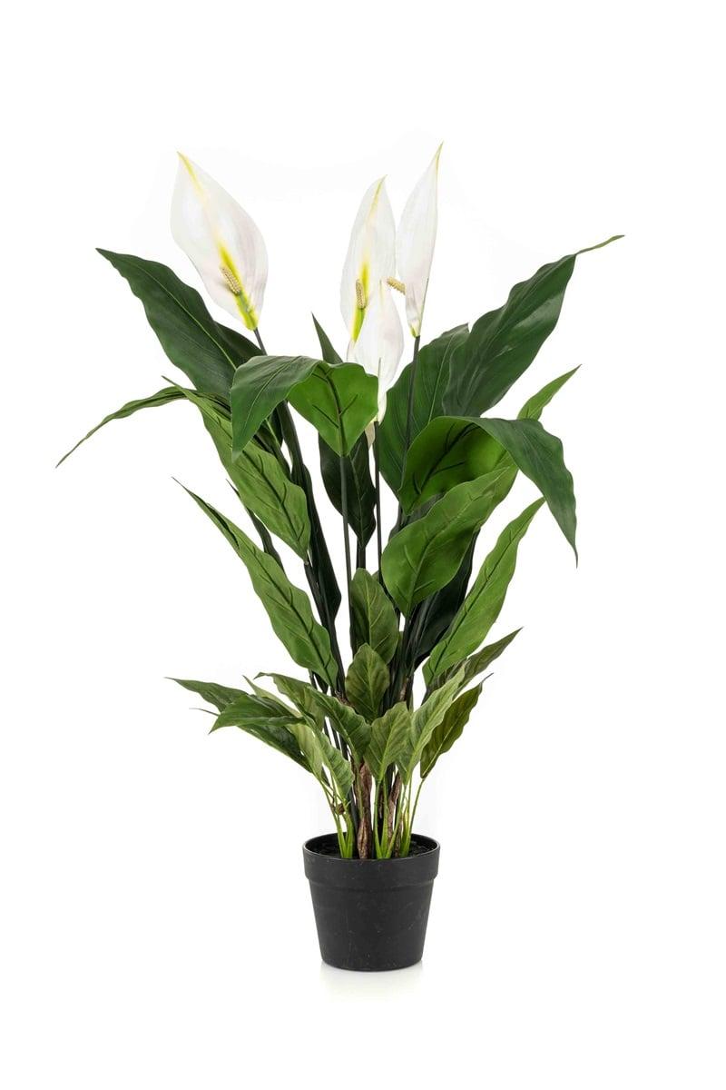 Umělá jednolistá rostlina RANIESO, dekorativní květináč, květy, bílá, 90cm