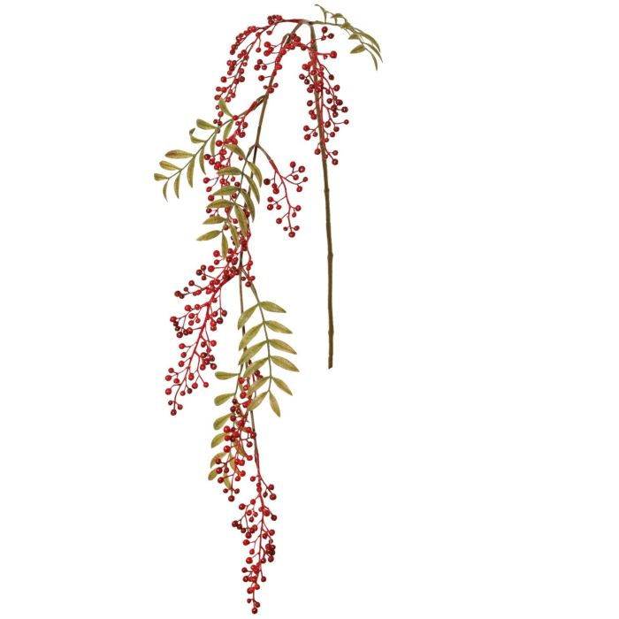 Umělá jeřabinová větev JANNAH s plody, červená, 120cm