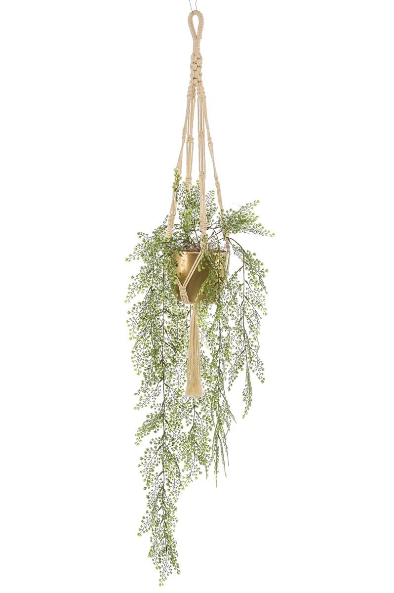 Umělá kapradina panenská kapradina závěsný koš ATHELSTAN, keramický květináč zlatý, zelená, 105cm