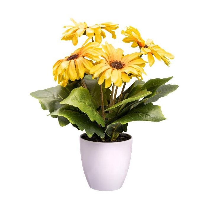 Umělá květina gerbera KROLVEN v dekorativním květináči, bílá, žlutá, 27cm