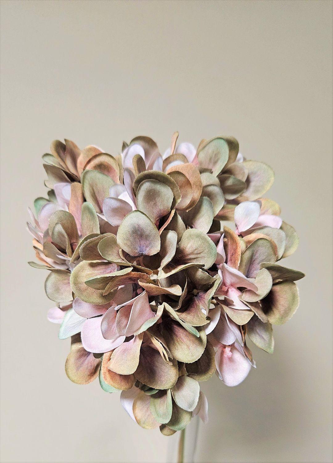 Umělá květina hortenzie MANDISA, zeleno-růžová, 65cm