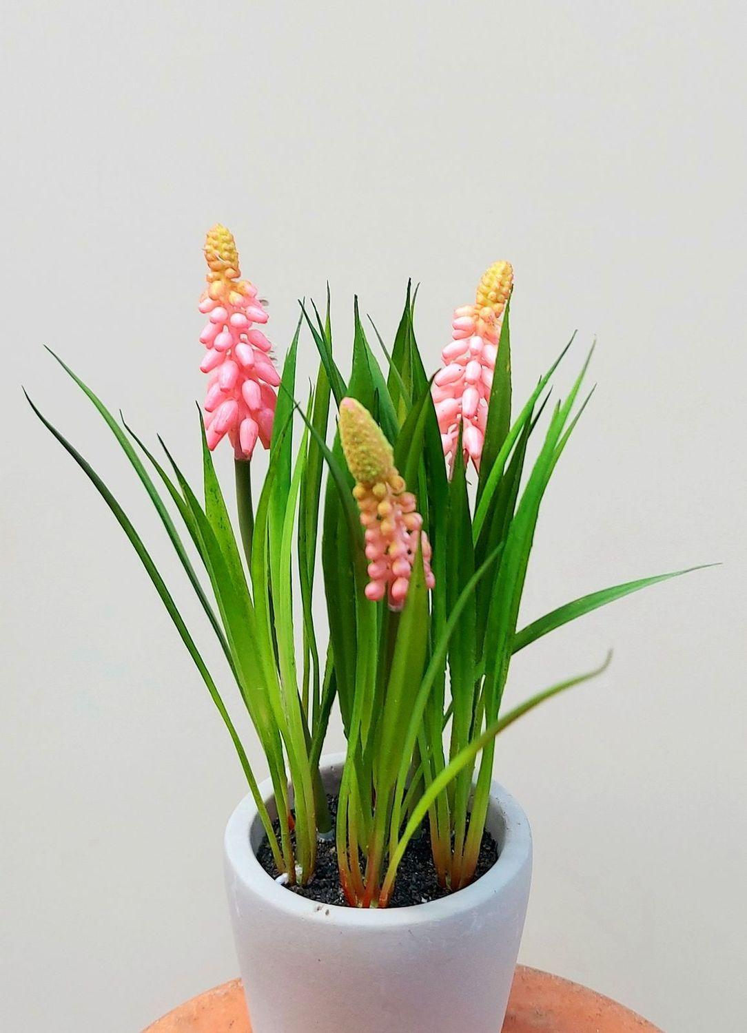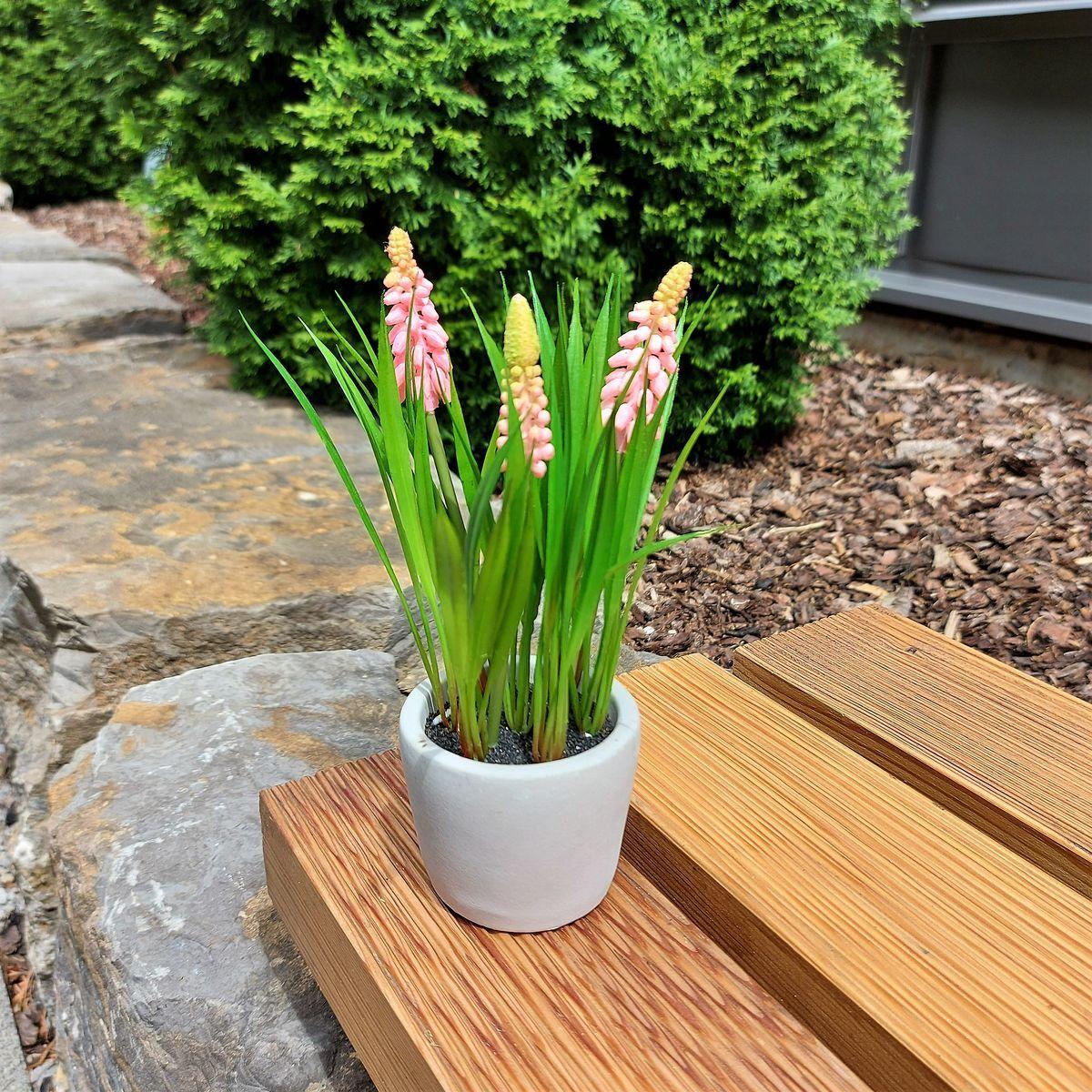 Umělá květina hroznový hyacint NARMADA v cementovém květináči, růžová, 20cm