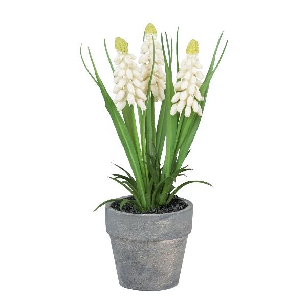 Umělá květina hroznový hyacint ZORKLEM v dekorativním květináči, bílá, 18cm
