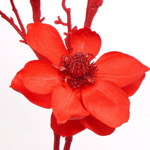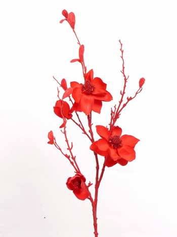Umělá květina magnólie SANDY, lesklá, červená, 115cm