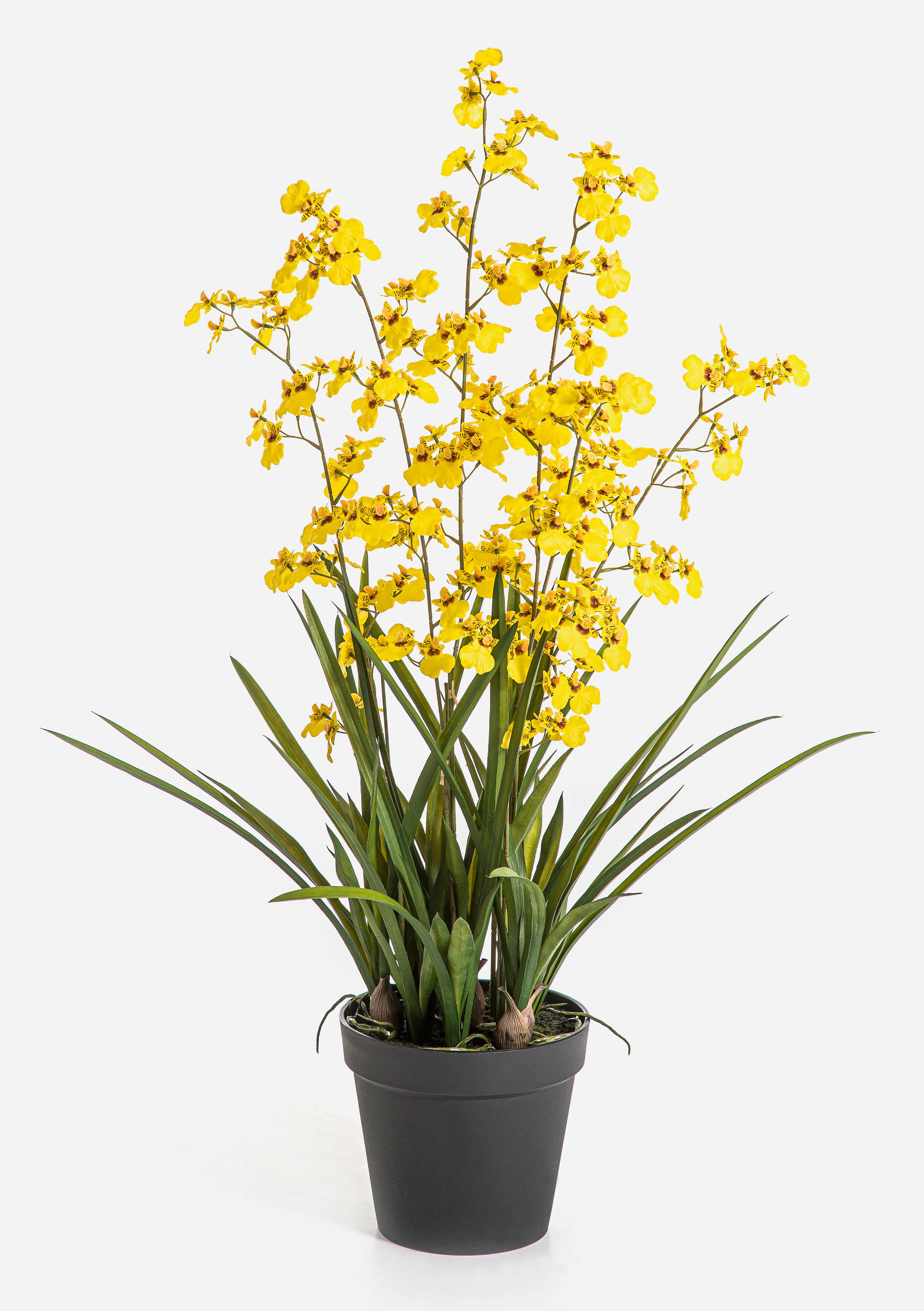 Umělá květina orchidej Oncidium LAFILEA v dekorativním květináči, žlutá, 100 cm