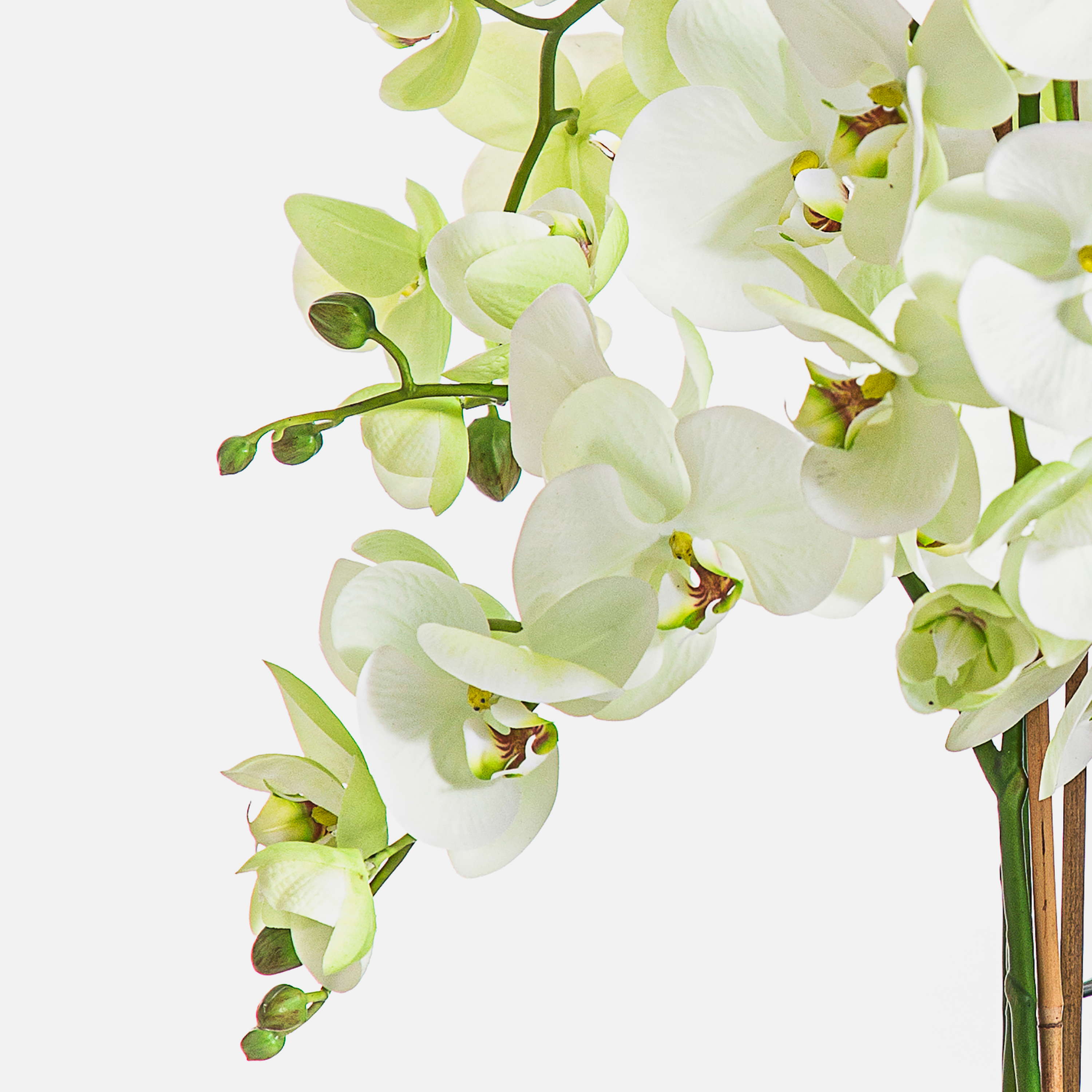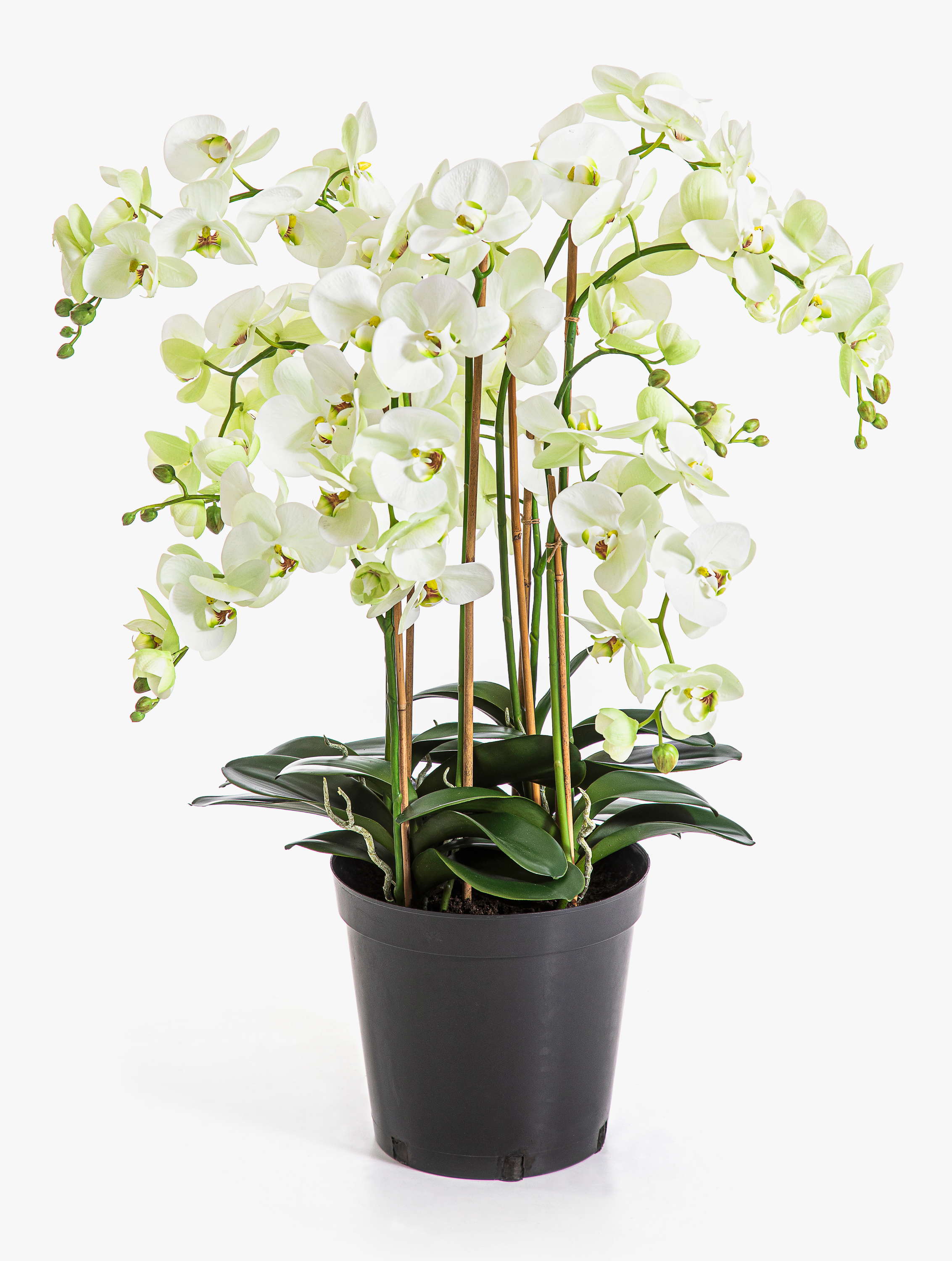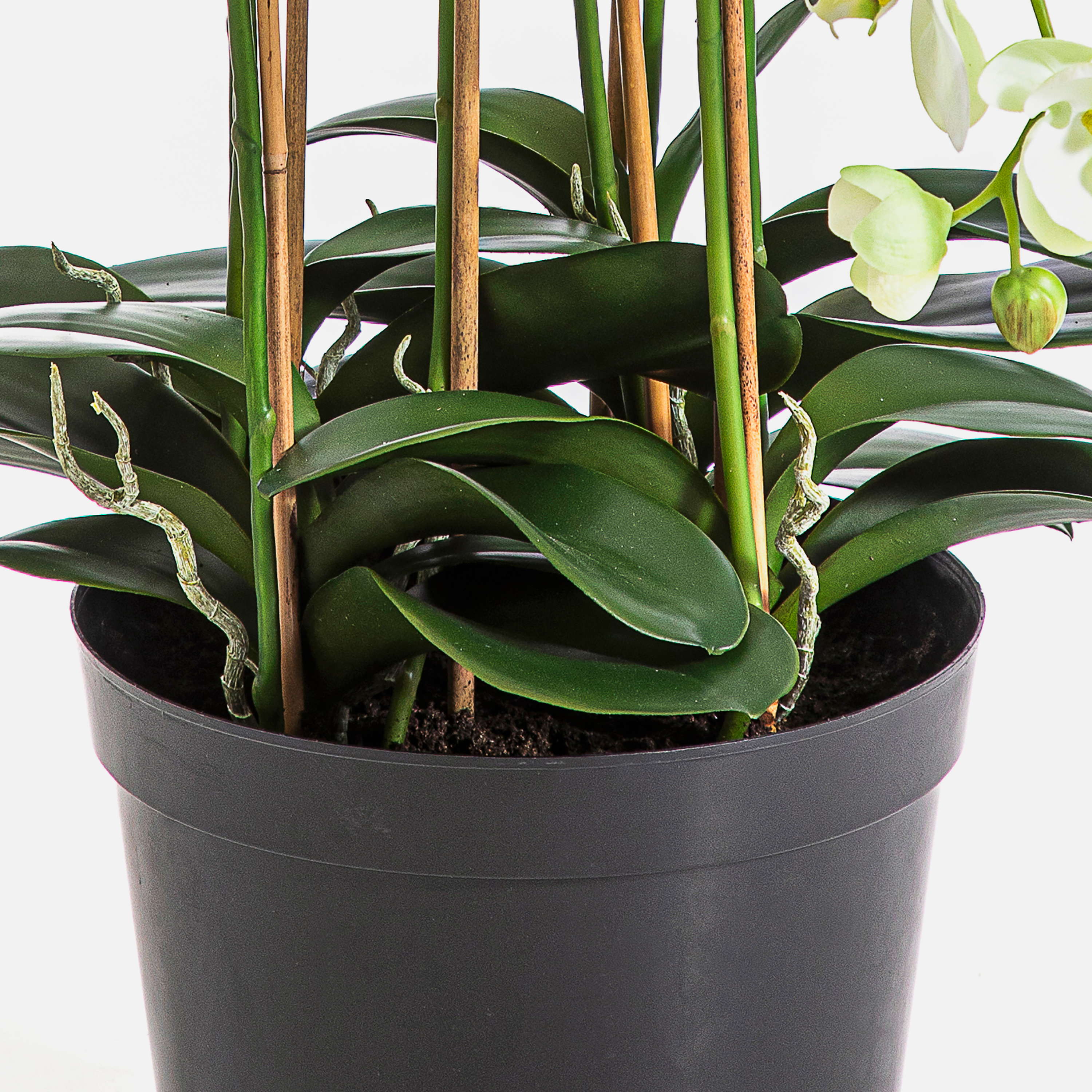 Umělá květina orchidej Phalaenopsis FINEA v dekorativním květináči, krémová, 85 cm