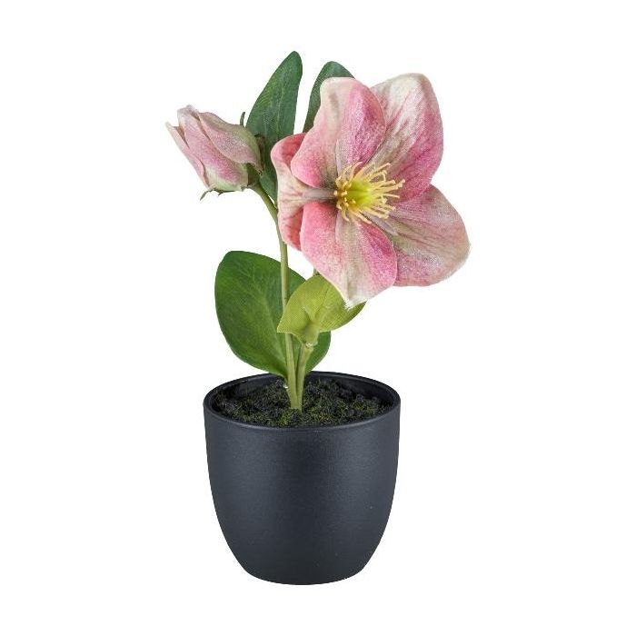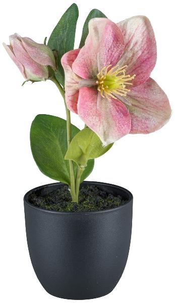Umělá květina vánoční růže DENDY, dekorativní květináč, růžová, 19cm