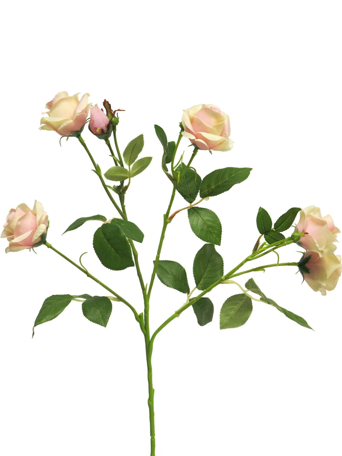 Umělá květinová větev růže SHANZHA, růžová-krémová, 70cm