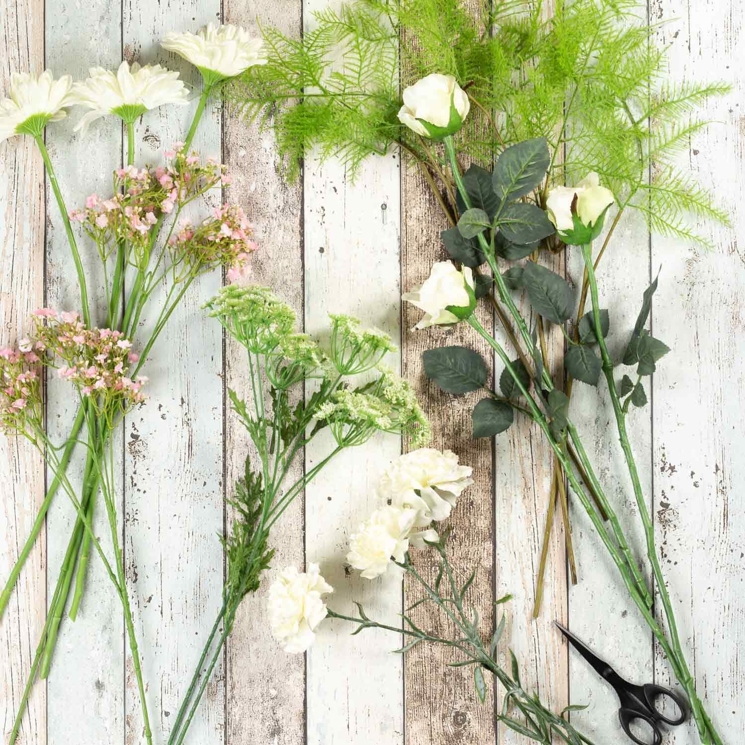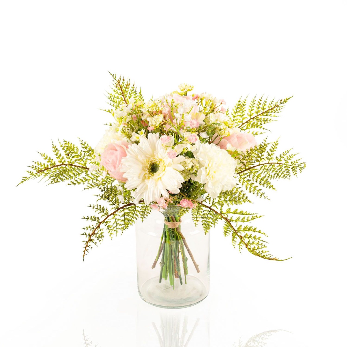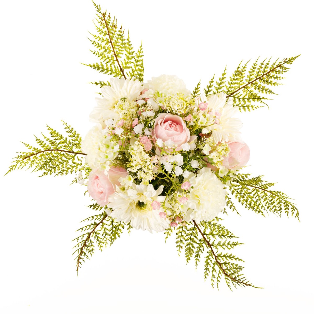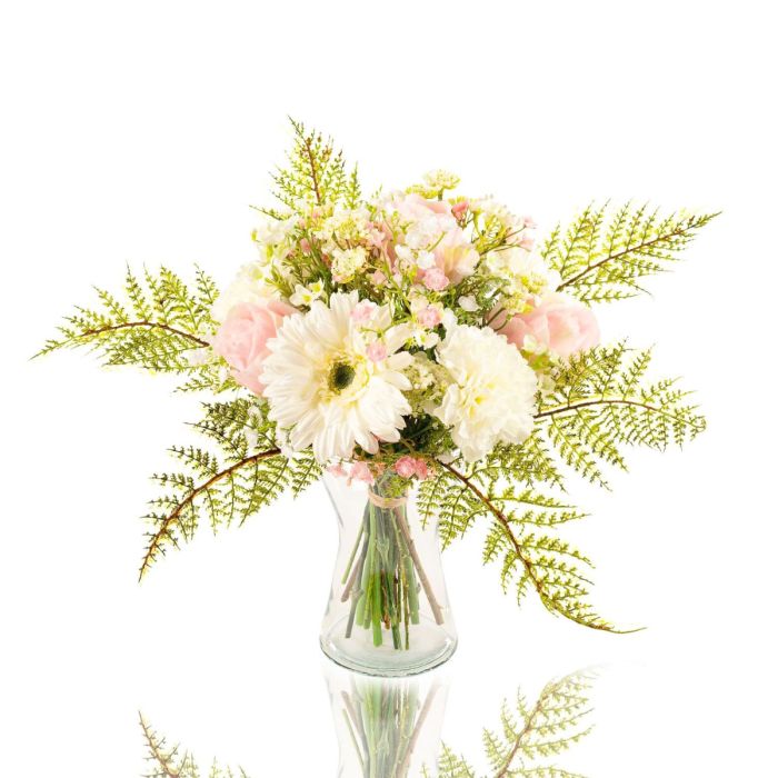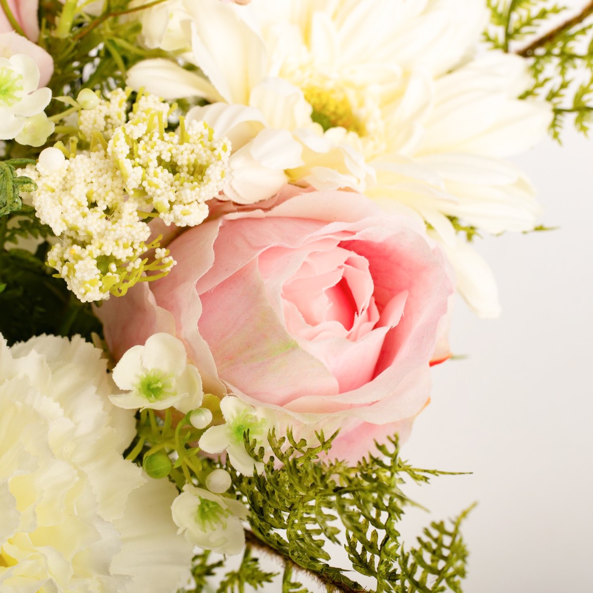 Umělá kytice gerber MALIA růže, hvozdík, bílo-růžová, 40cm, Ø30cm