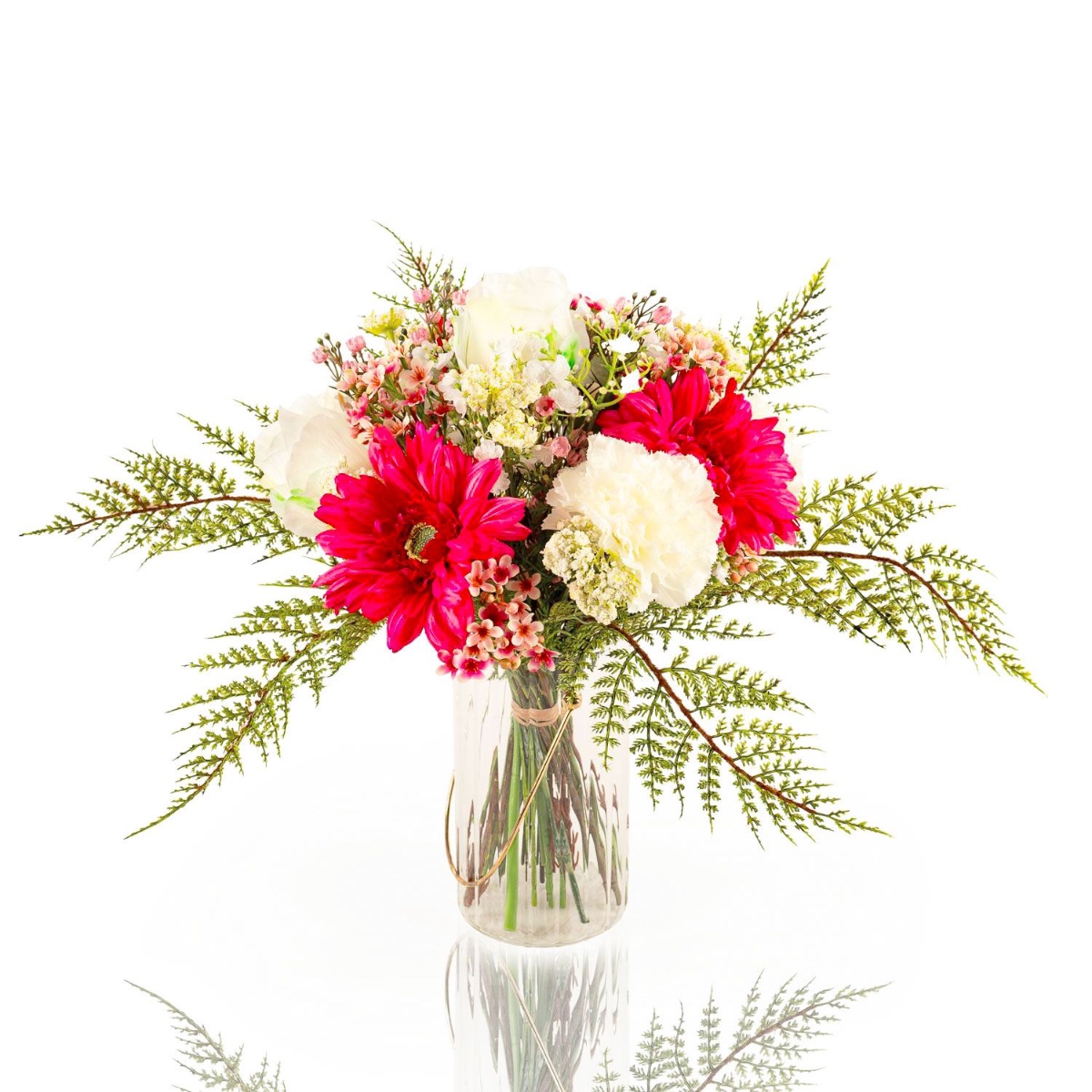 Umělá kytice gerber MALIA růže, hvozdík, růžová, 40cm, Ø30cm