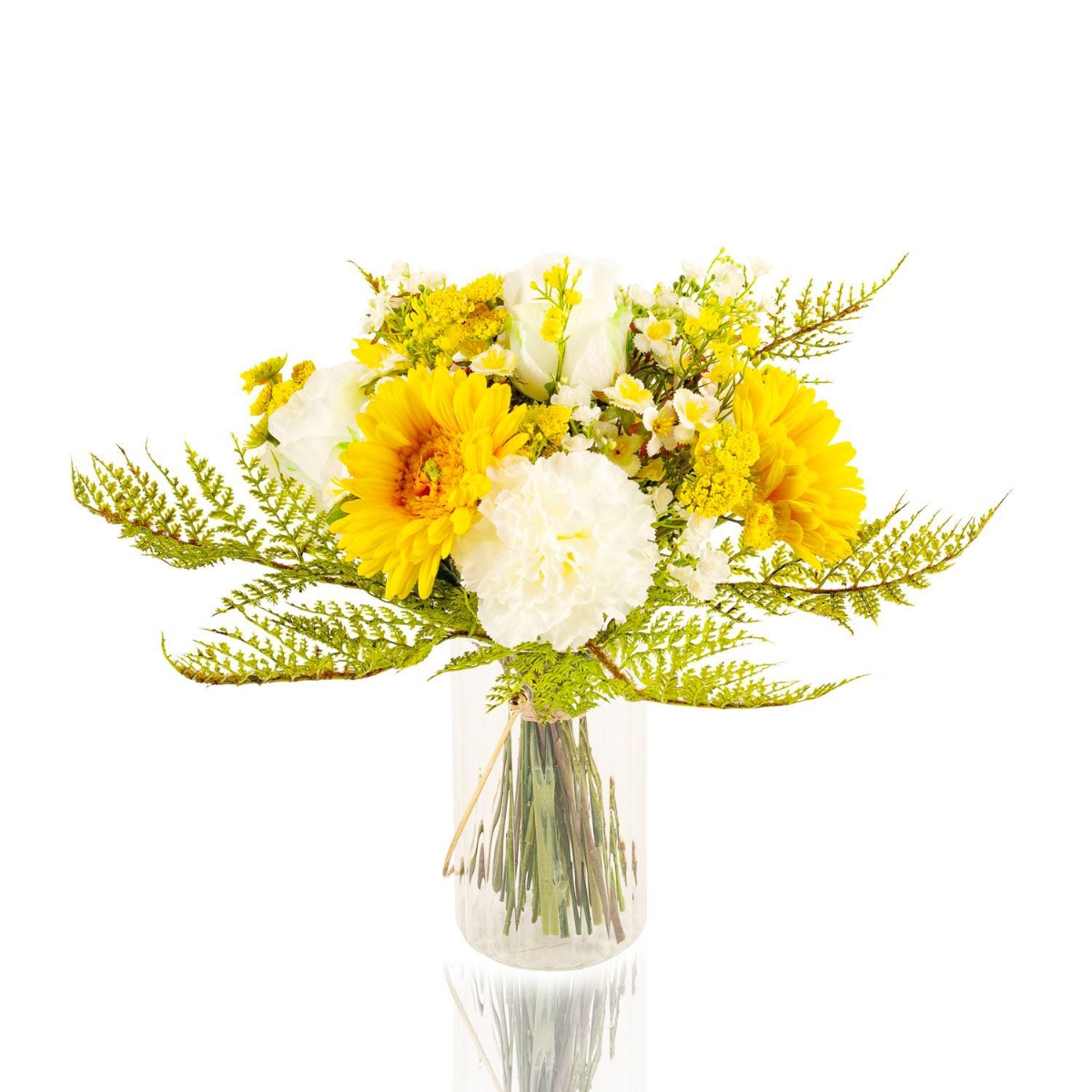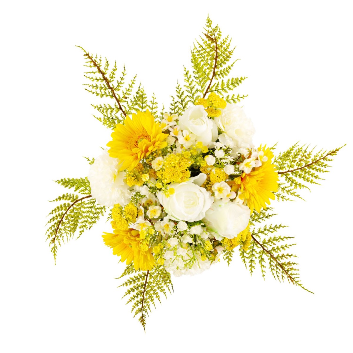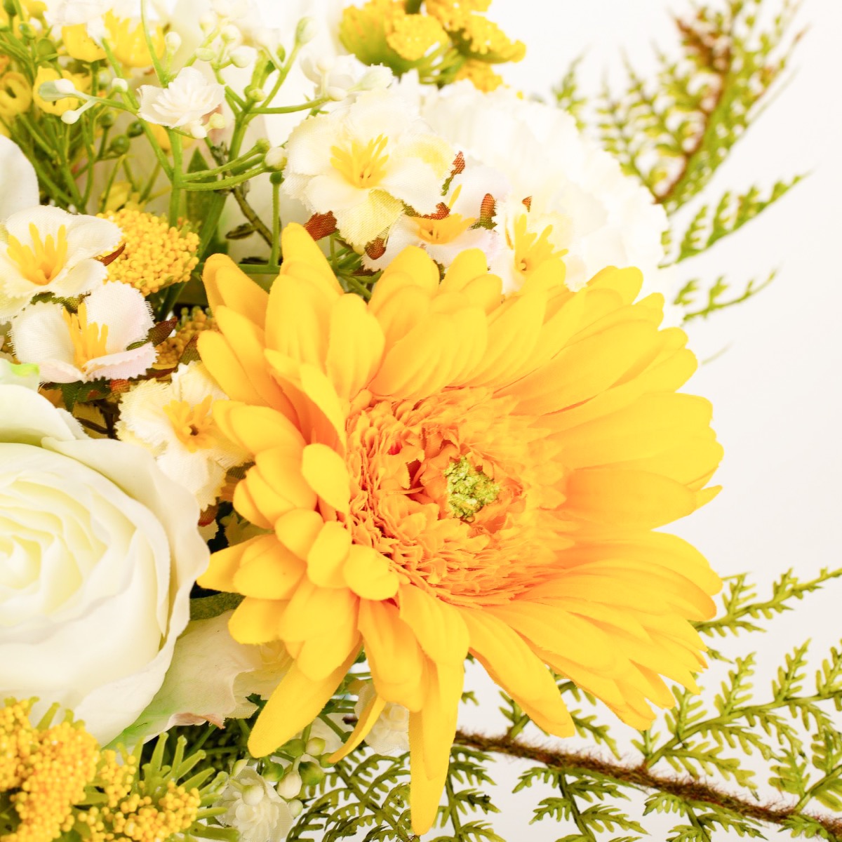 Umělá kytice gerber MALIA růže, karafiát, žlutá, 40cm, Ø30cm
