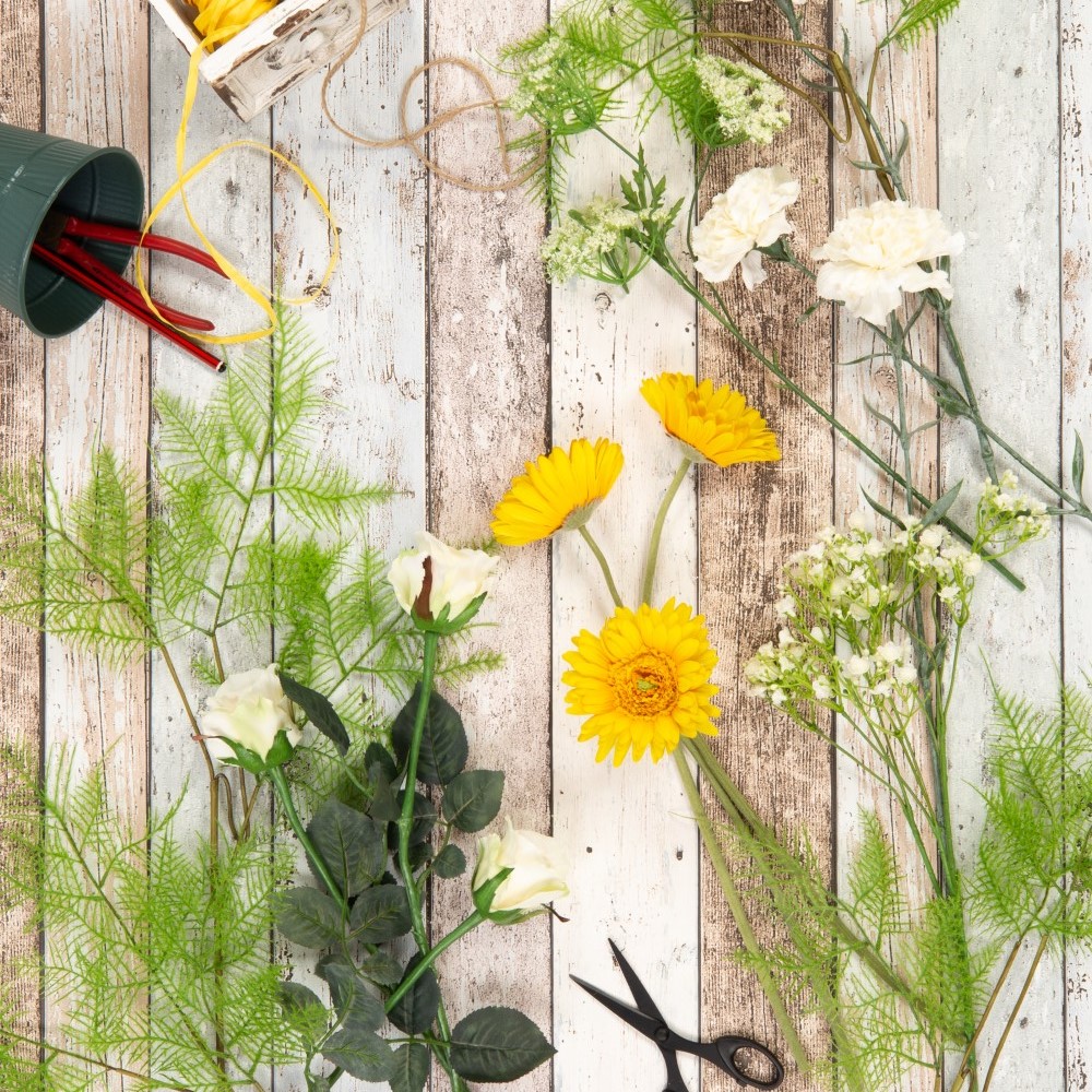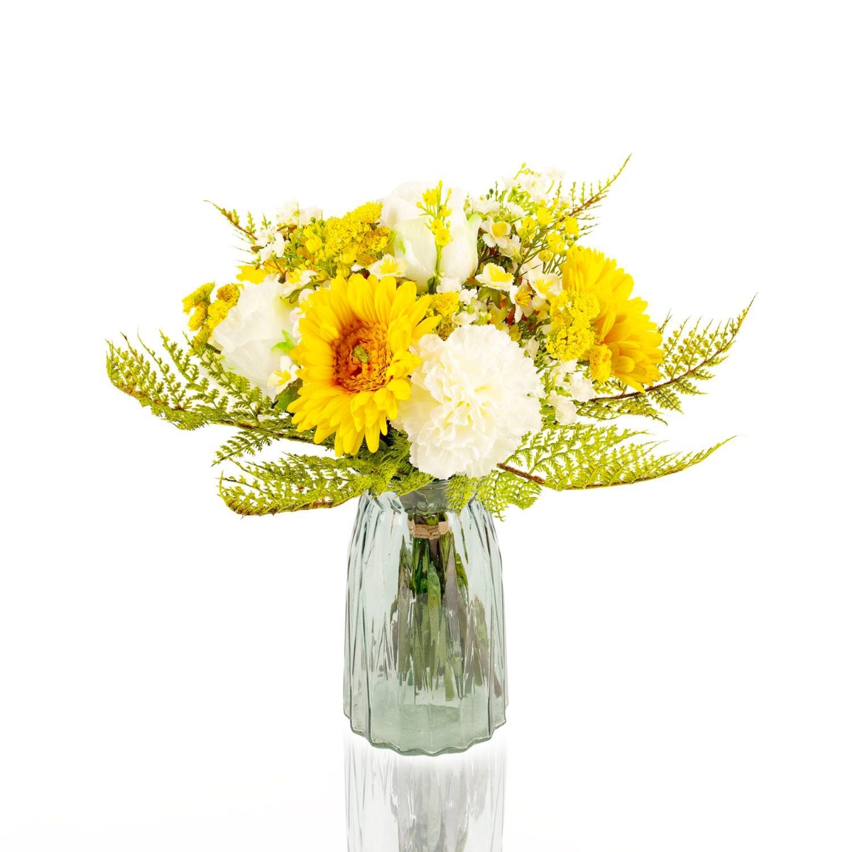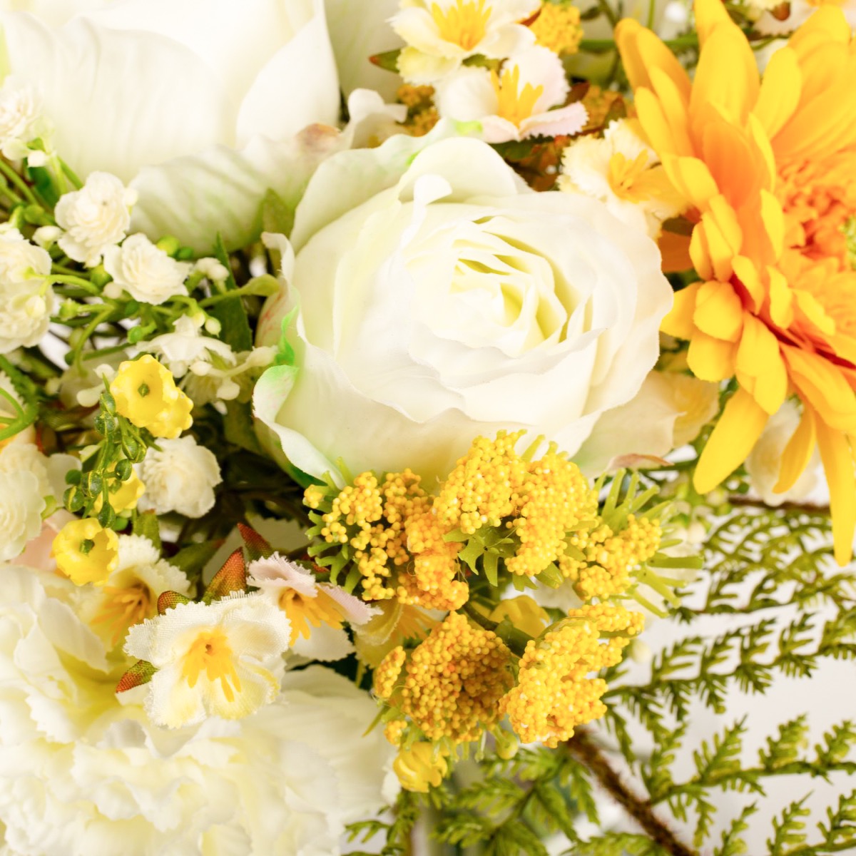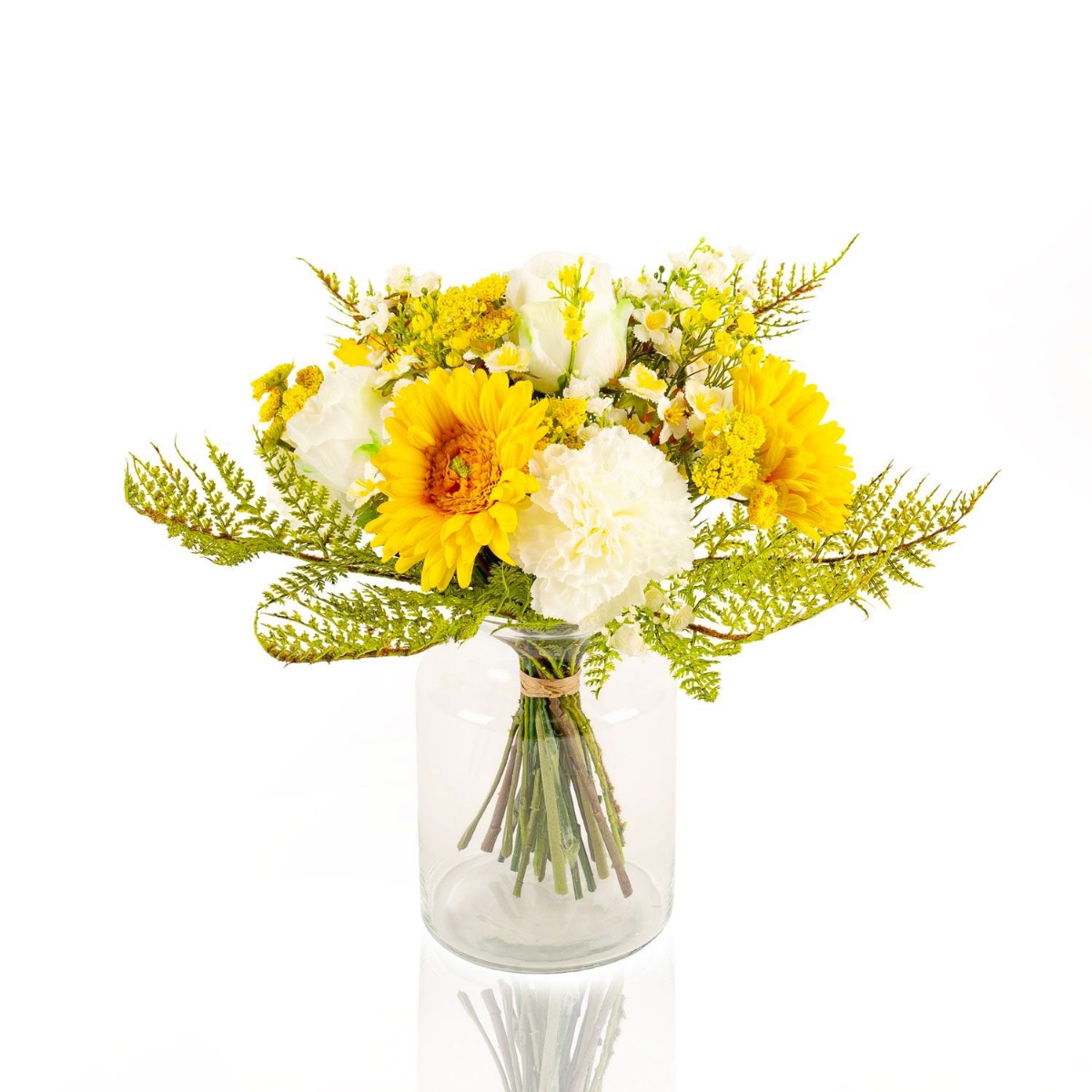 Umělá kytice gerber MALIA růže, karafiát, žlutá, 40cm, Ø30cm