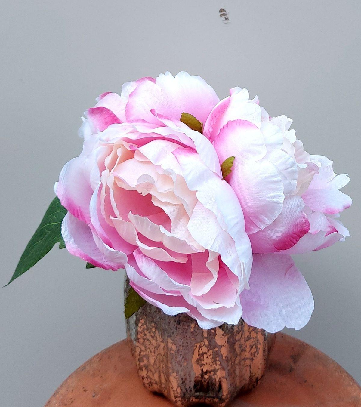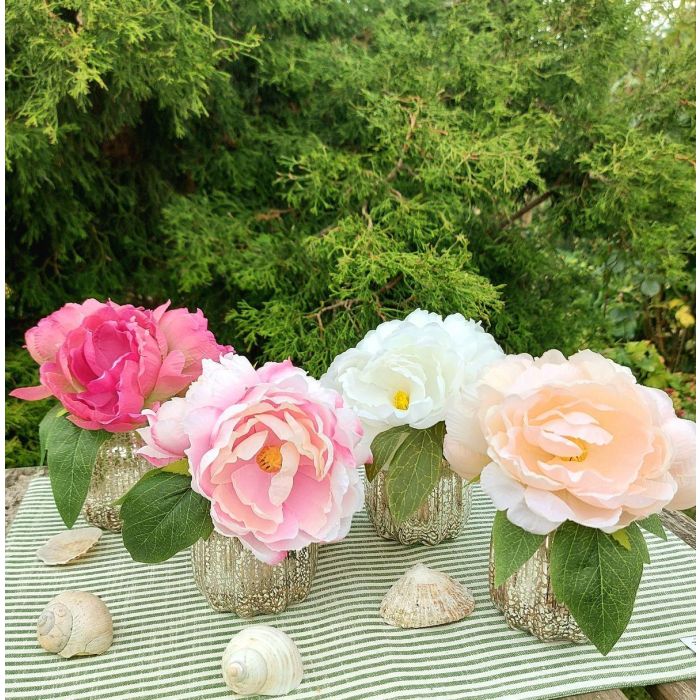 Umělá kytice pivoněk VEIKO ve skleněné váze, růžovo-krémová, 15cm