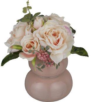 Umělá kytice růží NURZO s doplňky, světle růžová, 30cm