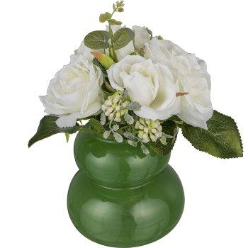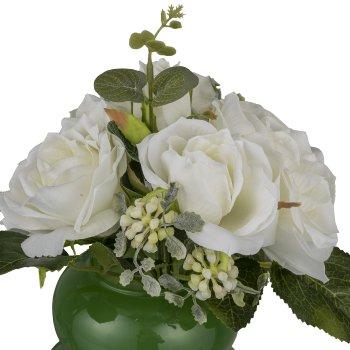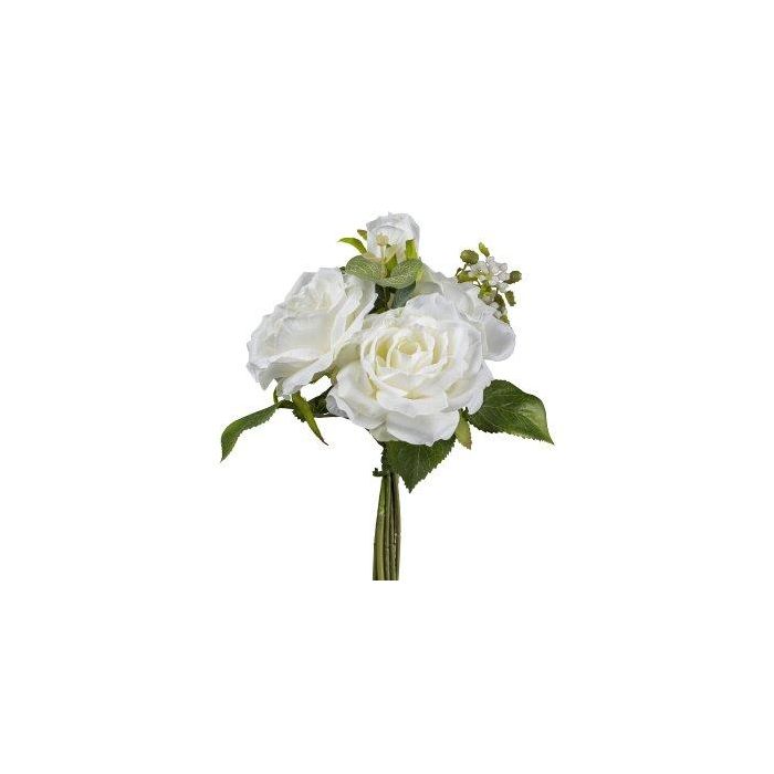 Umělá kytice růží NURZO s ozdobami, bílá, 30cm