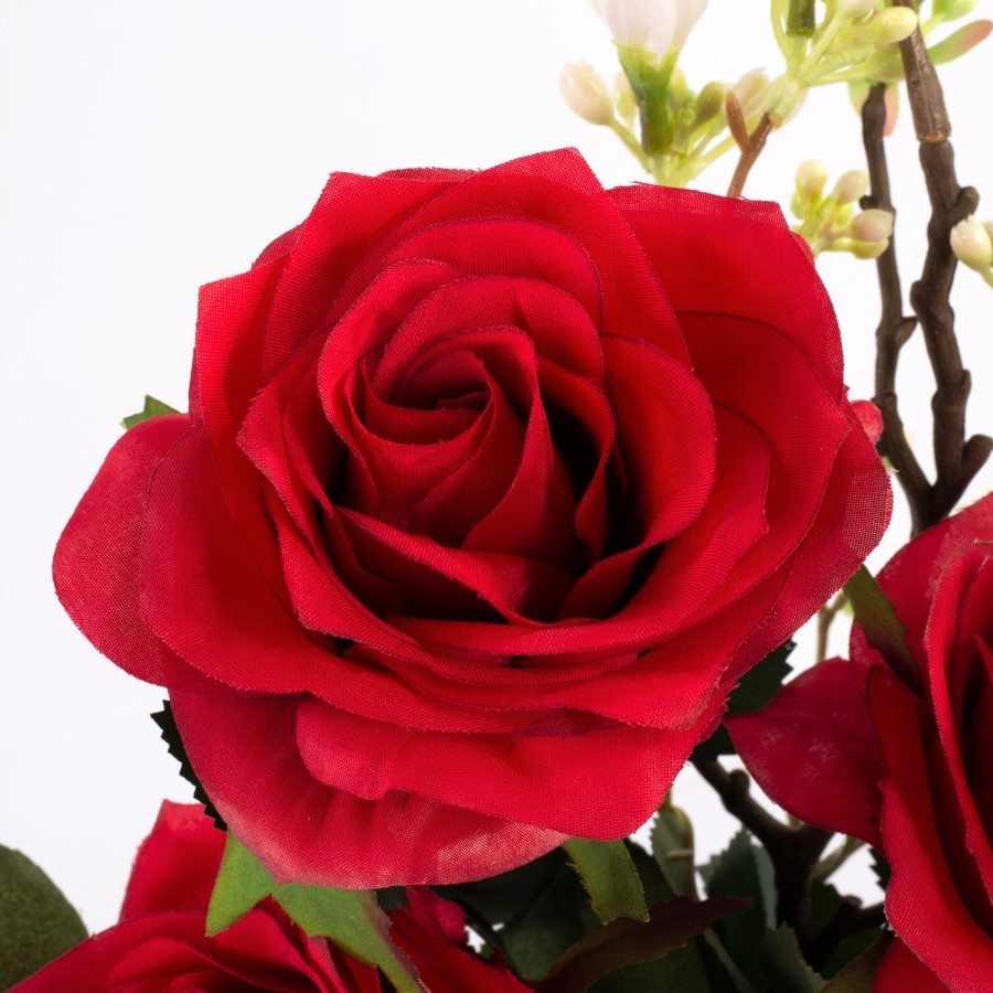 Umělá kytice růží SIMONY s dekorační zelení, červená, 55cm, Ø20cm