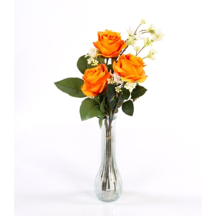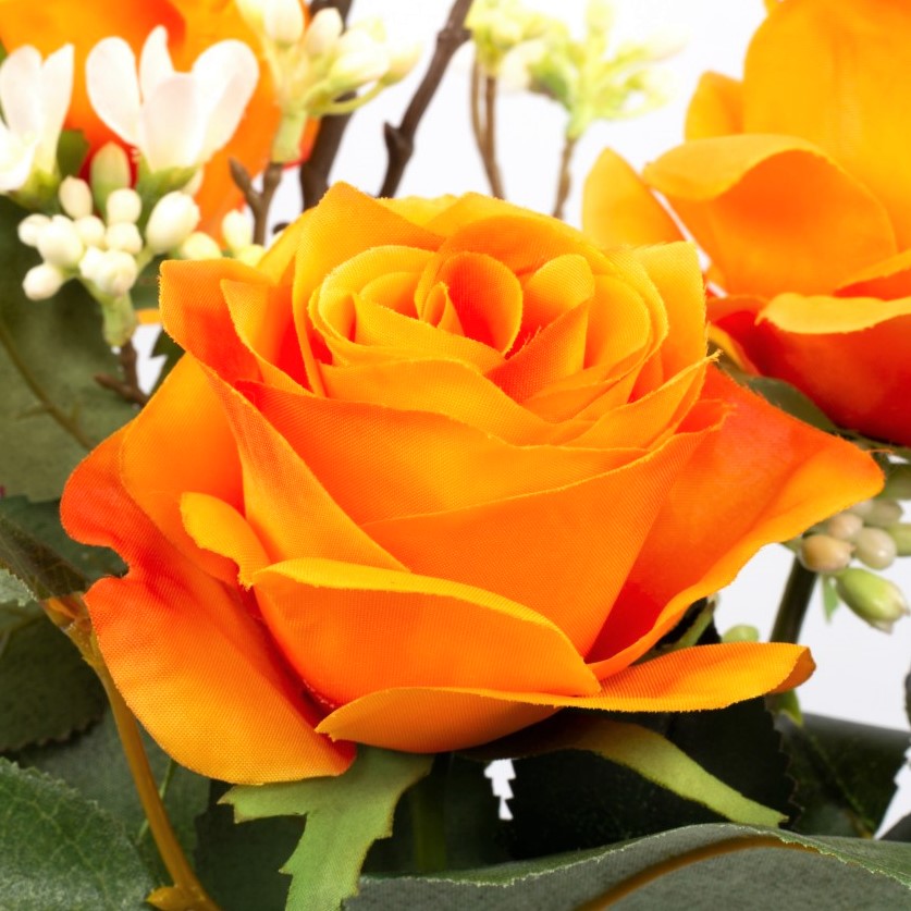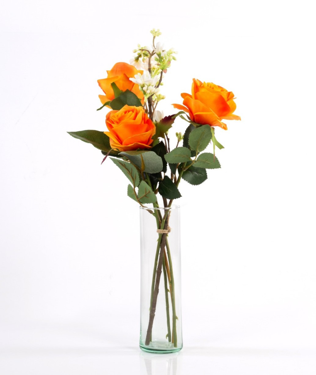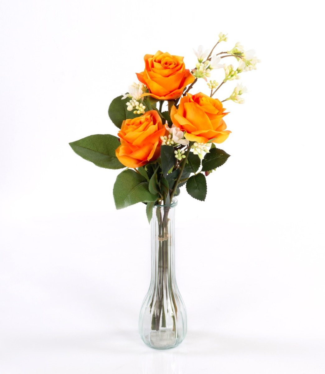 Umělá kytice růží SIMONY s dekorační zelení, oranžová, 55cm, Ø20cm