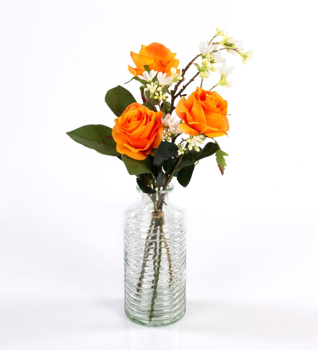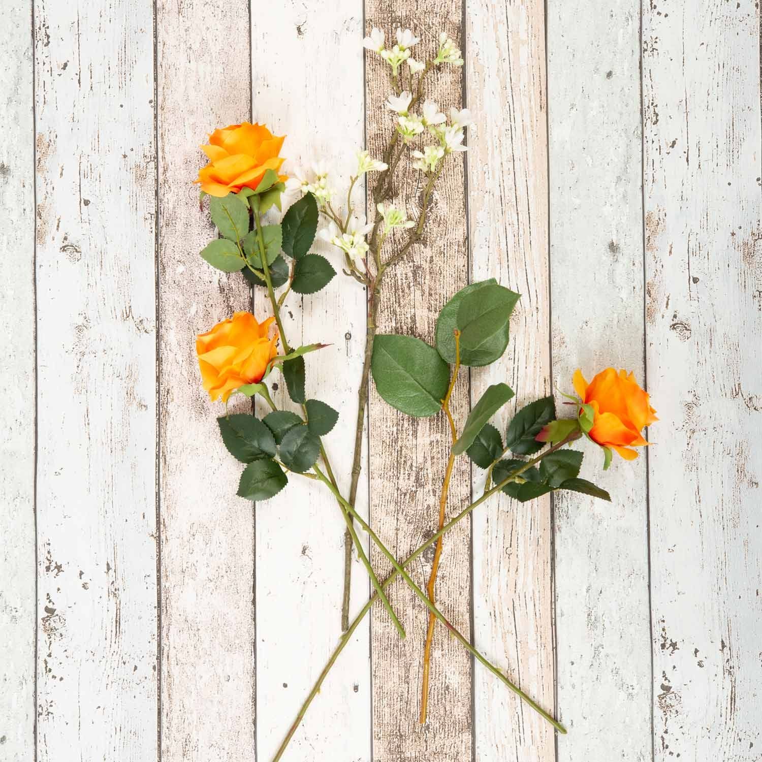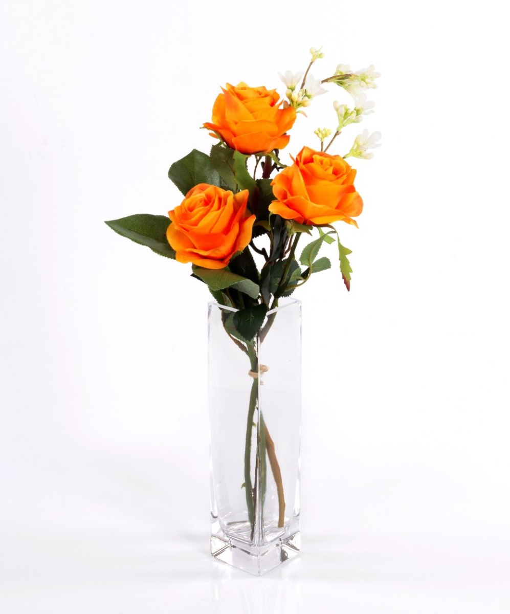 Umělá kytice růží SIMONY s dekorační zelení, oranžová, 55cm, Ø20cm