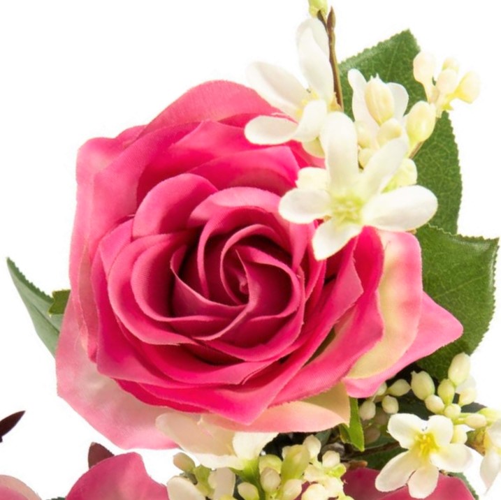 Umělá kytice růží SIMONY s dekorační zelení, růžová, 55cm, Ø20cm