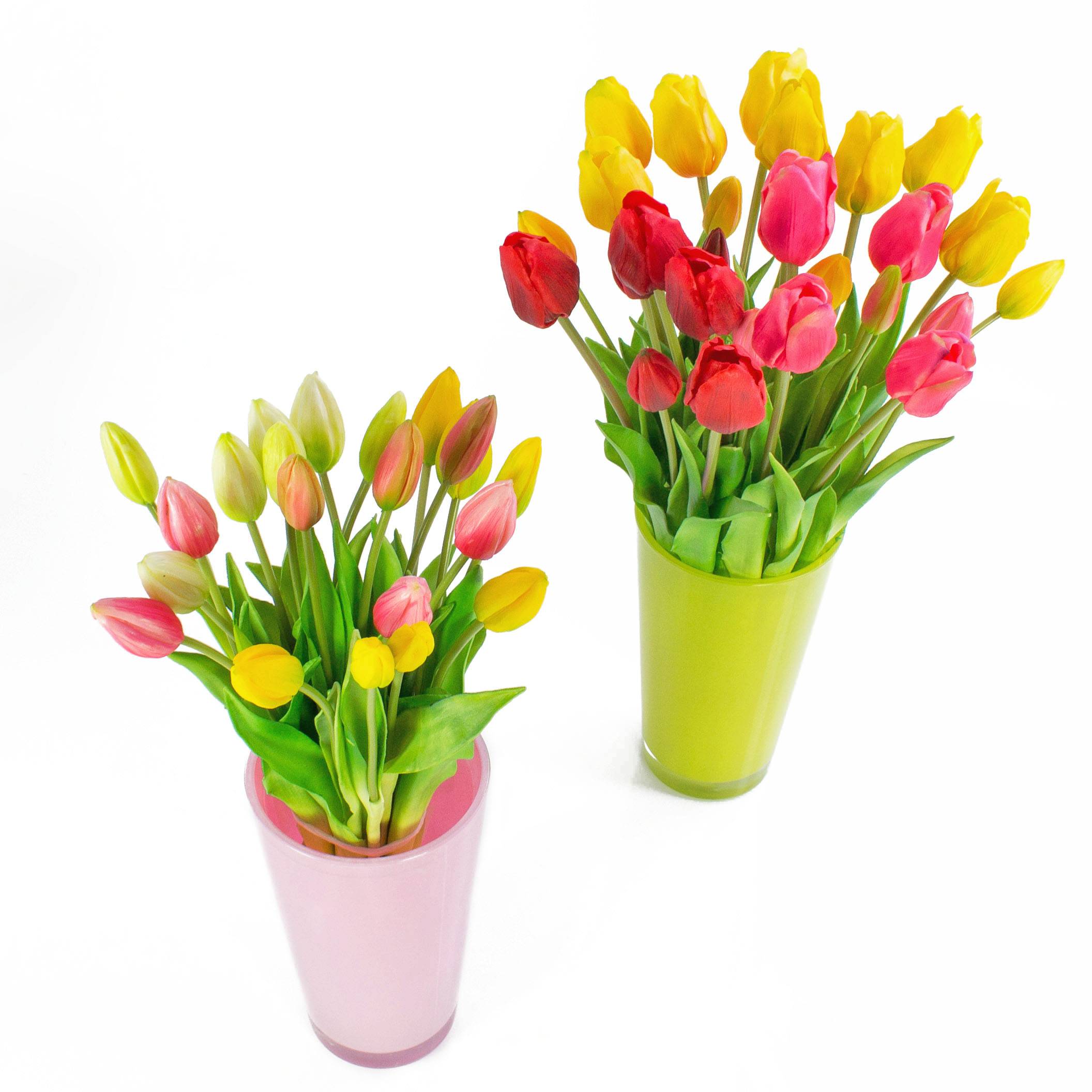 Umělá kytice tulipánů LONA, růžovo-zelená, 45cm, Ø20cm