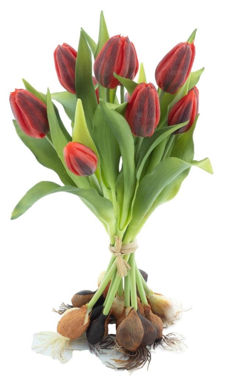 Umělá kytice tulipánů LONA s cibulkami, červeno-černá, 35cm, Ø25cm