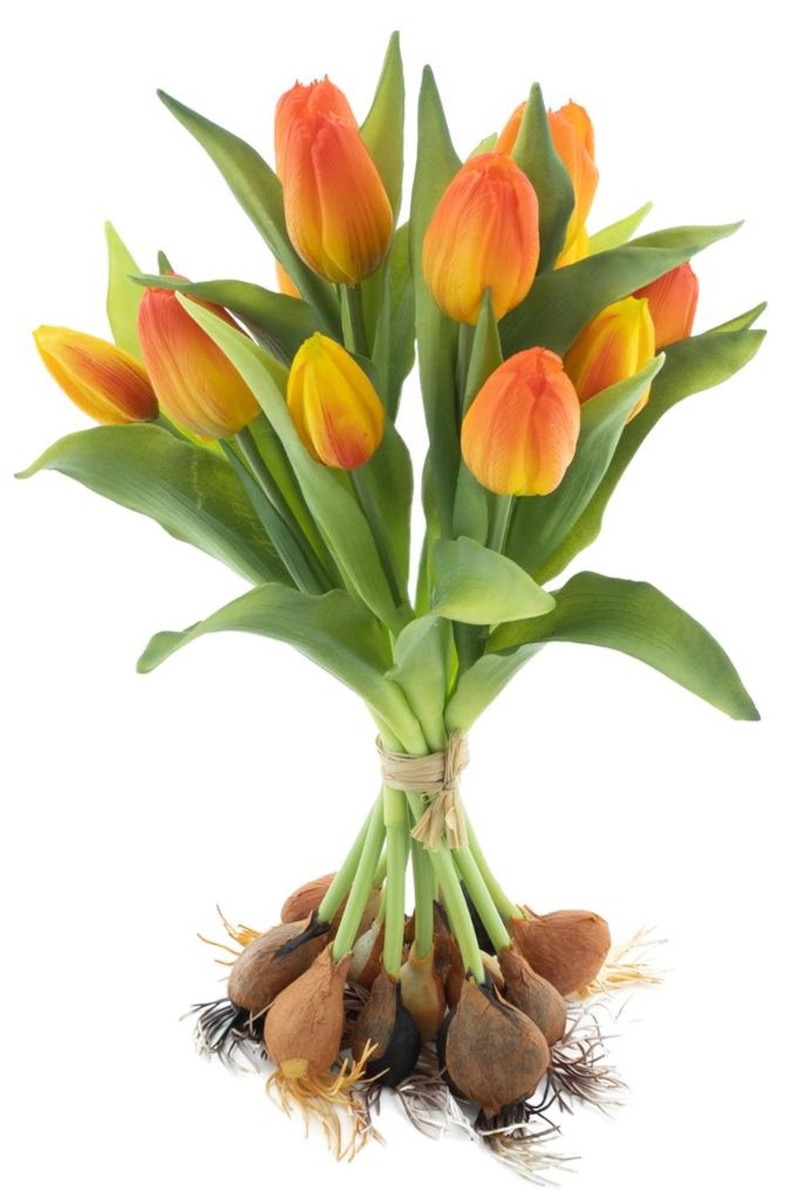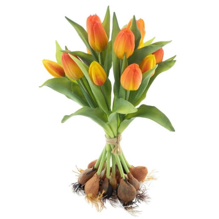 Umělá kytice tulipánů LONA s cibulkami, oranžovo-žlutá, 35cm, Ø25cm